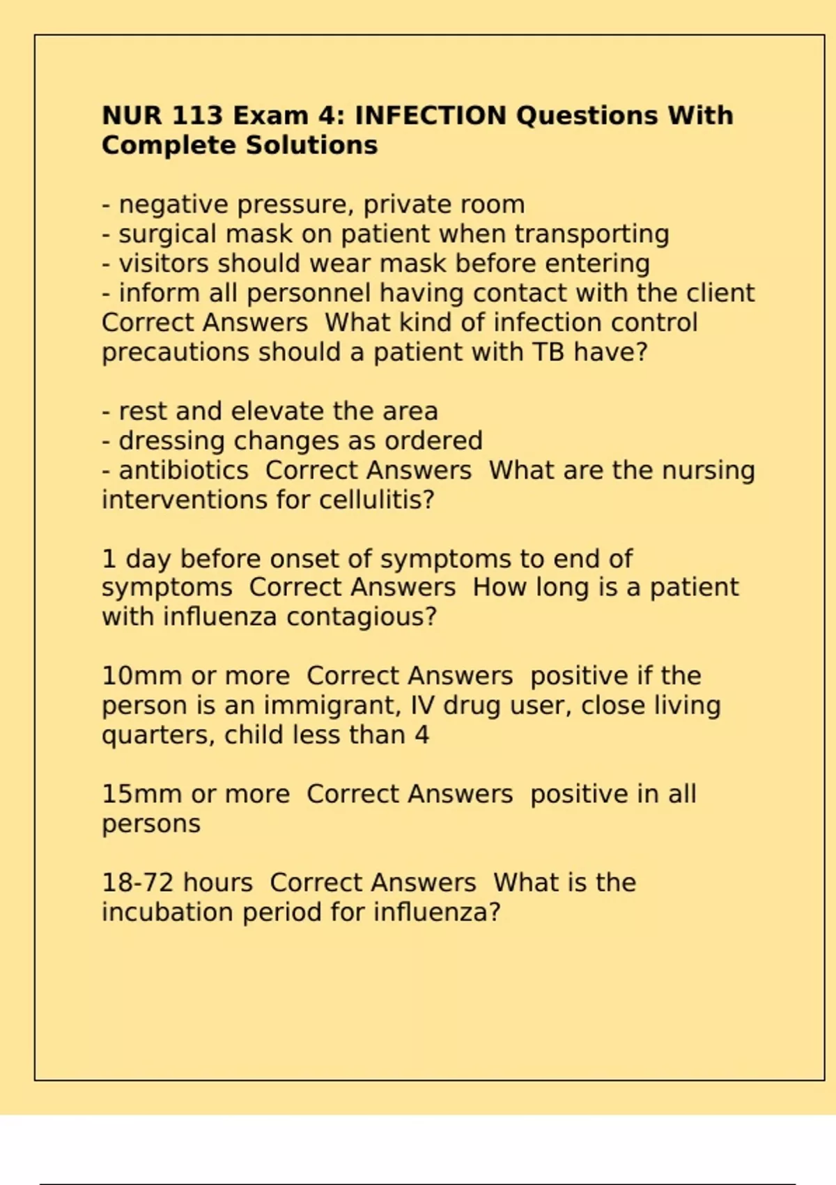 Correct Answers What kind of infection control