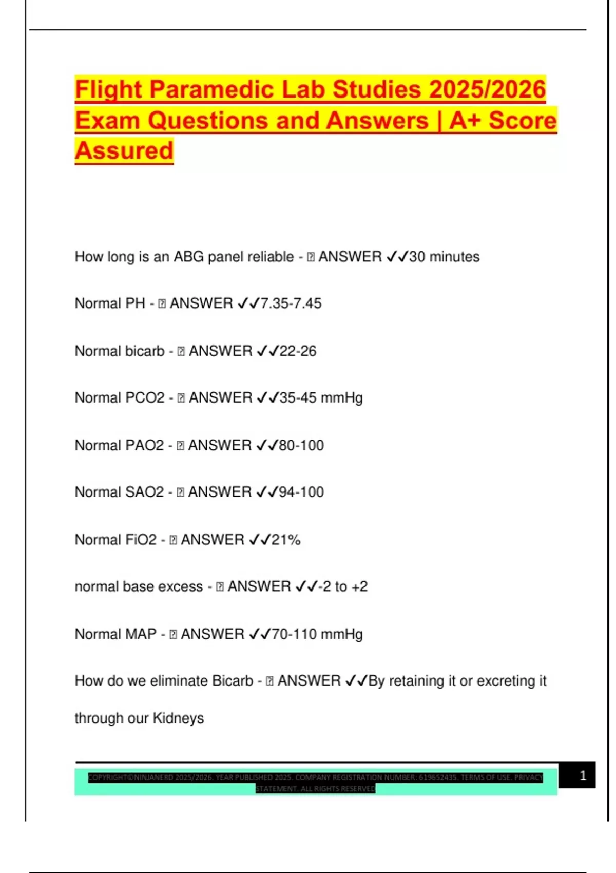 Flight Paramedic Lab Studies 2025/2026