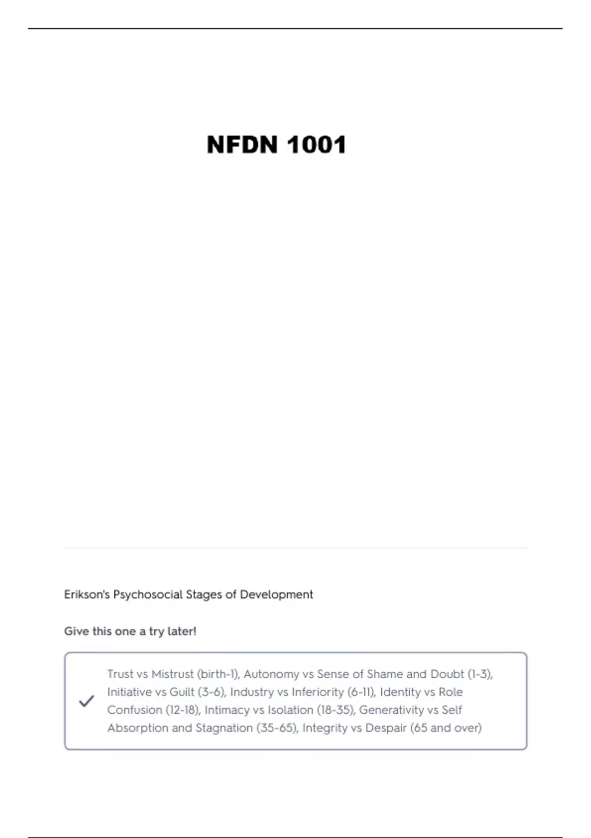 Trust vs Mistrust (birth-1), Autonomy vs Sense of Shame and Doubt (1-3),