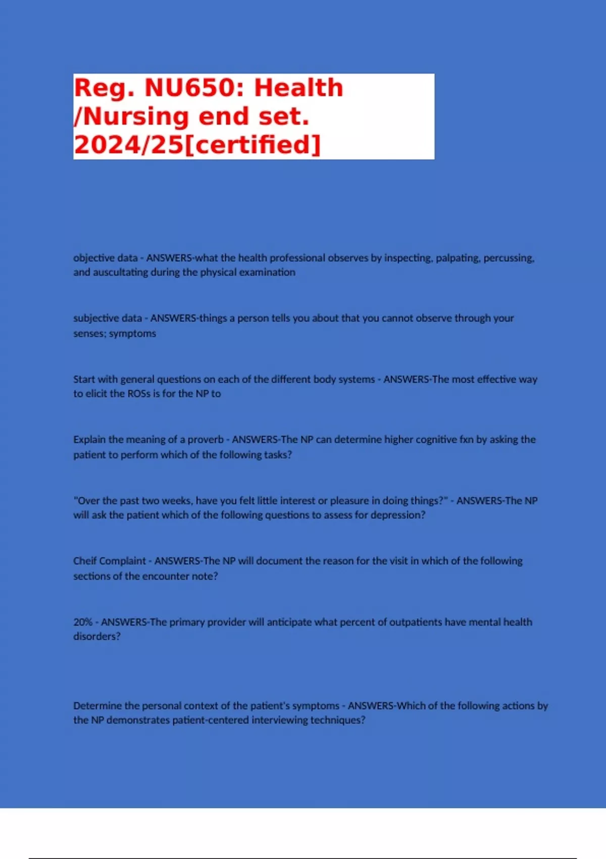 Reg. NU650: Health /Nursing end set. 2024/25[certified]