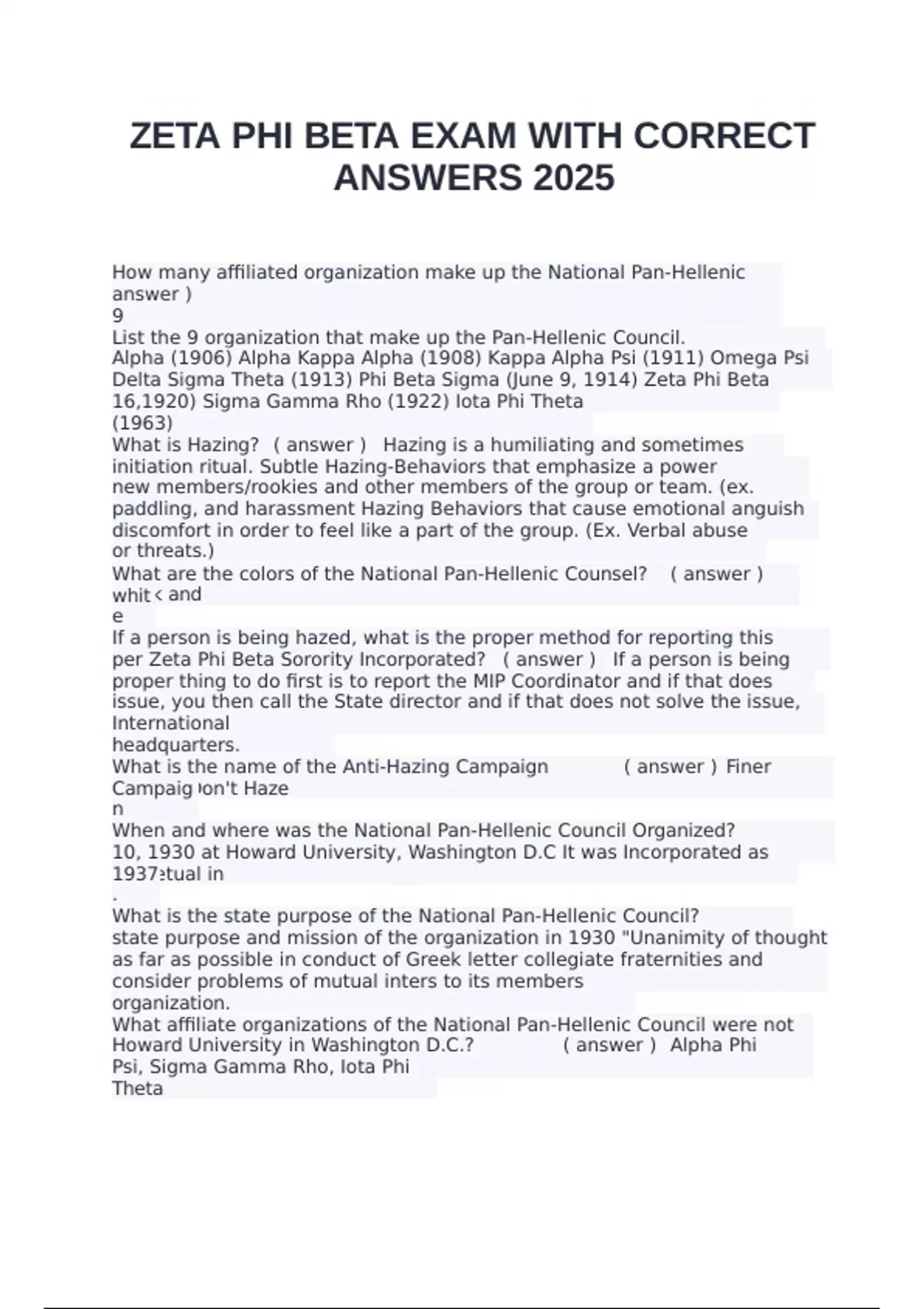 ZETA PHI BETA EXAM WITH CORRECT