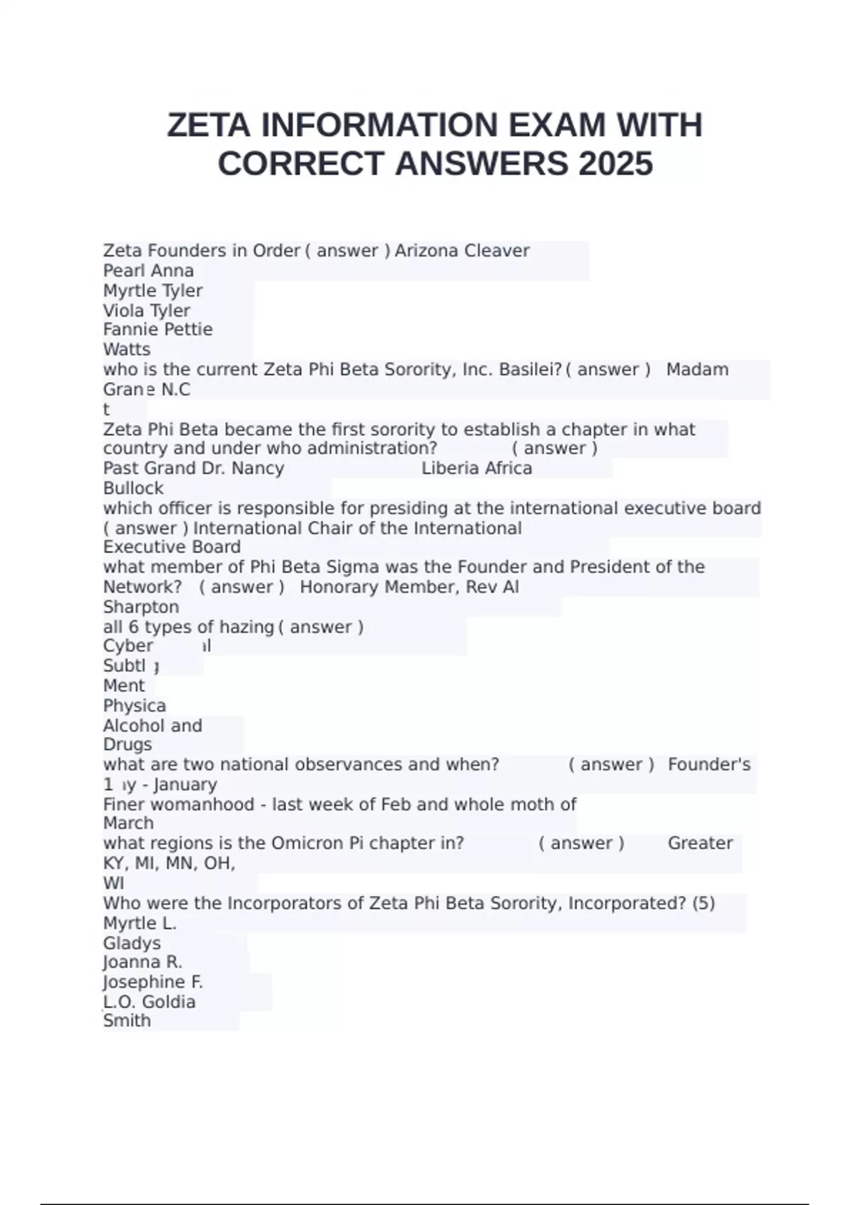 CORRECT ANSWERS 2025