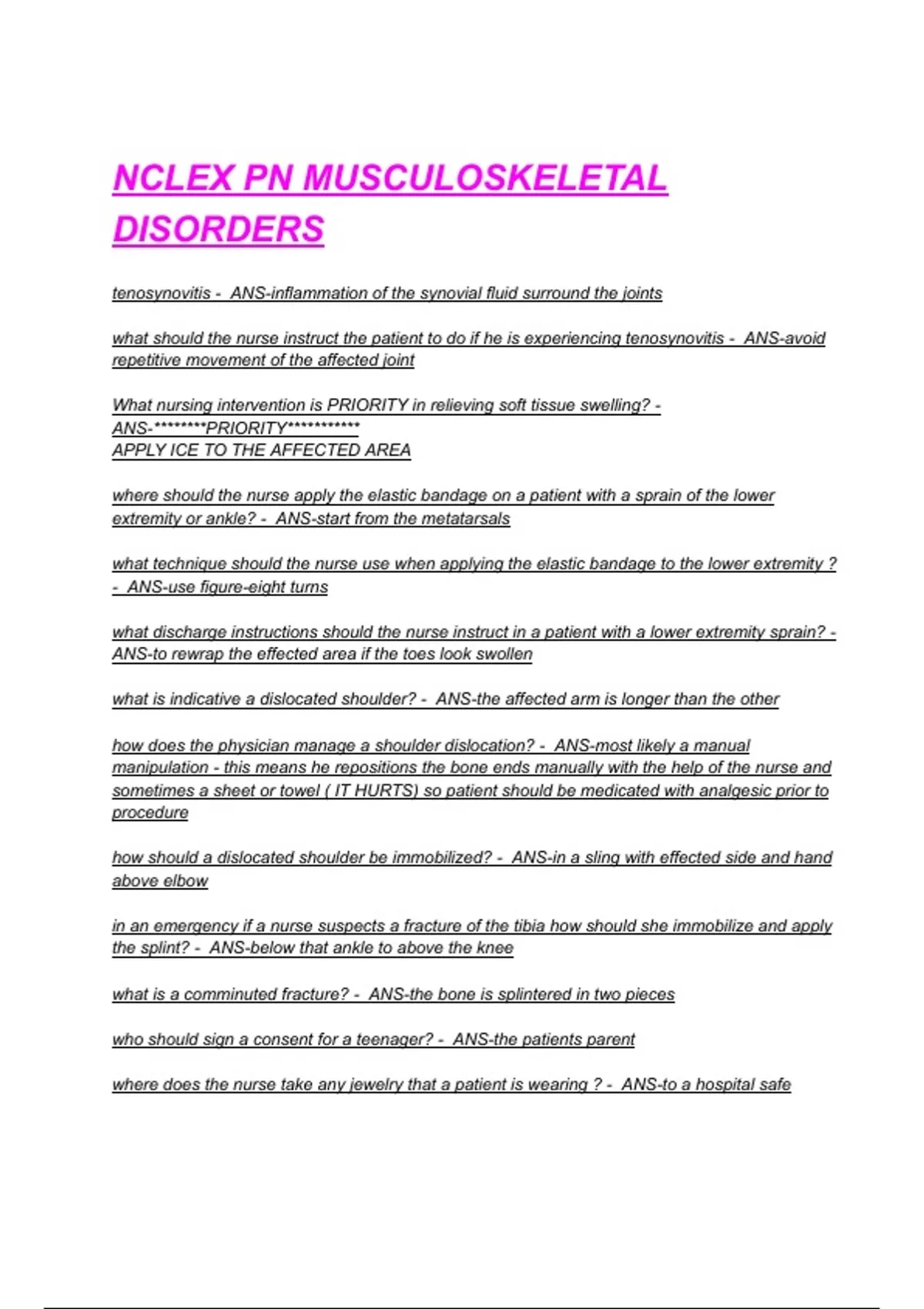 NCLEX PN MUSCULOSKELETAL