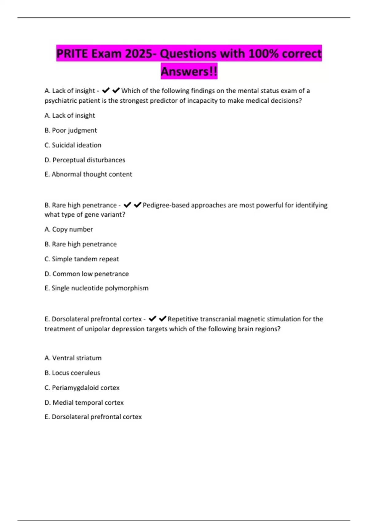 A. Lack of insight - ✔✔Which of the following findings on the mental status exam of a