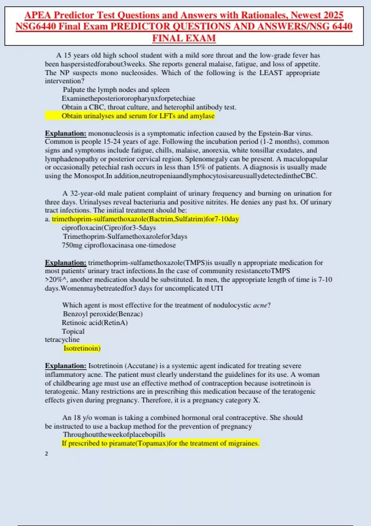 NSG6440 Final Exam PREDICTOR QUESTIONS AND ANSWERS/NSG 6440