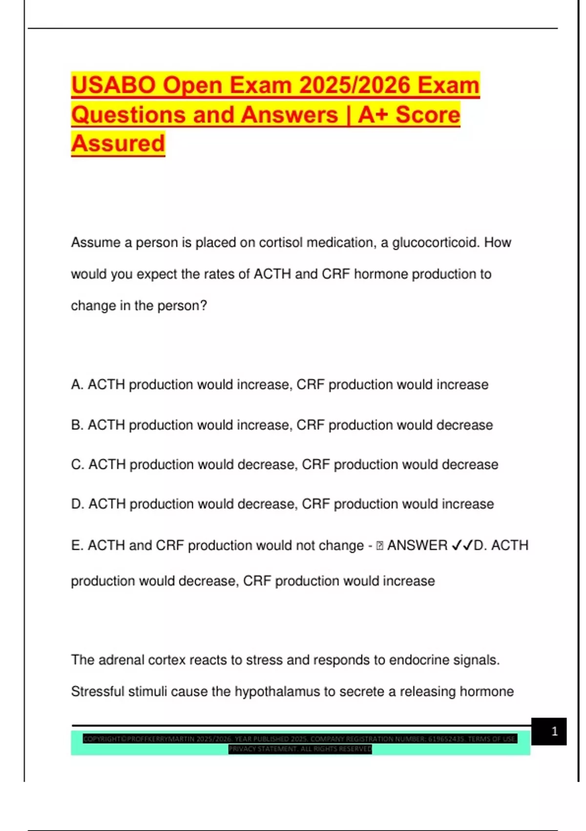 E. ACTH and CRF production would not change - 🧠 ANSWER ✔✔D. ACTH