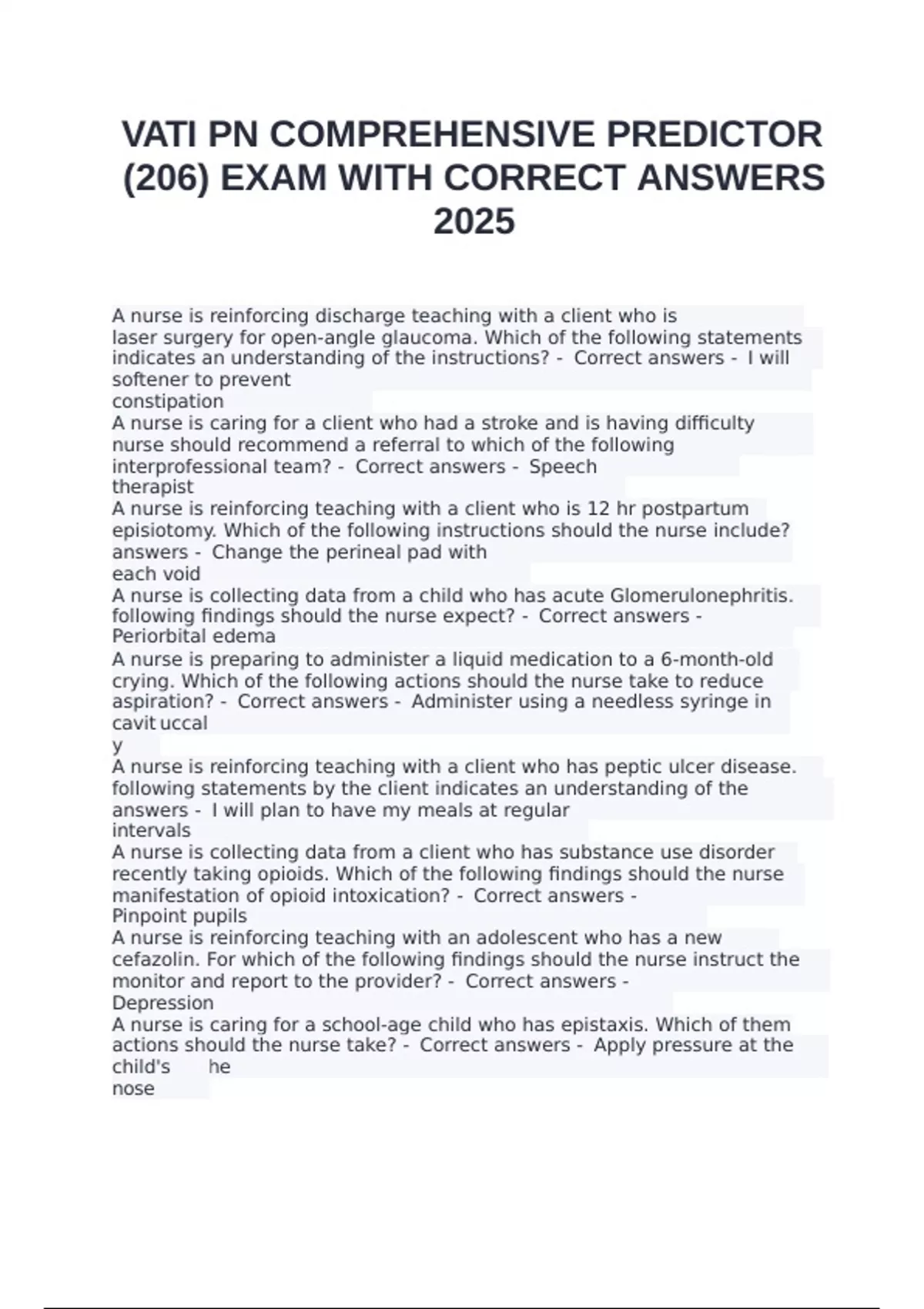 VATI PN COMPREHENSIVE PREDICTOR (206) EXAM WITH CORRECT ANSWERS 2025