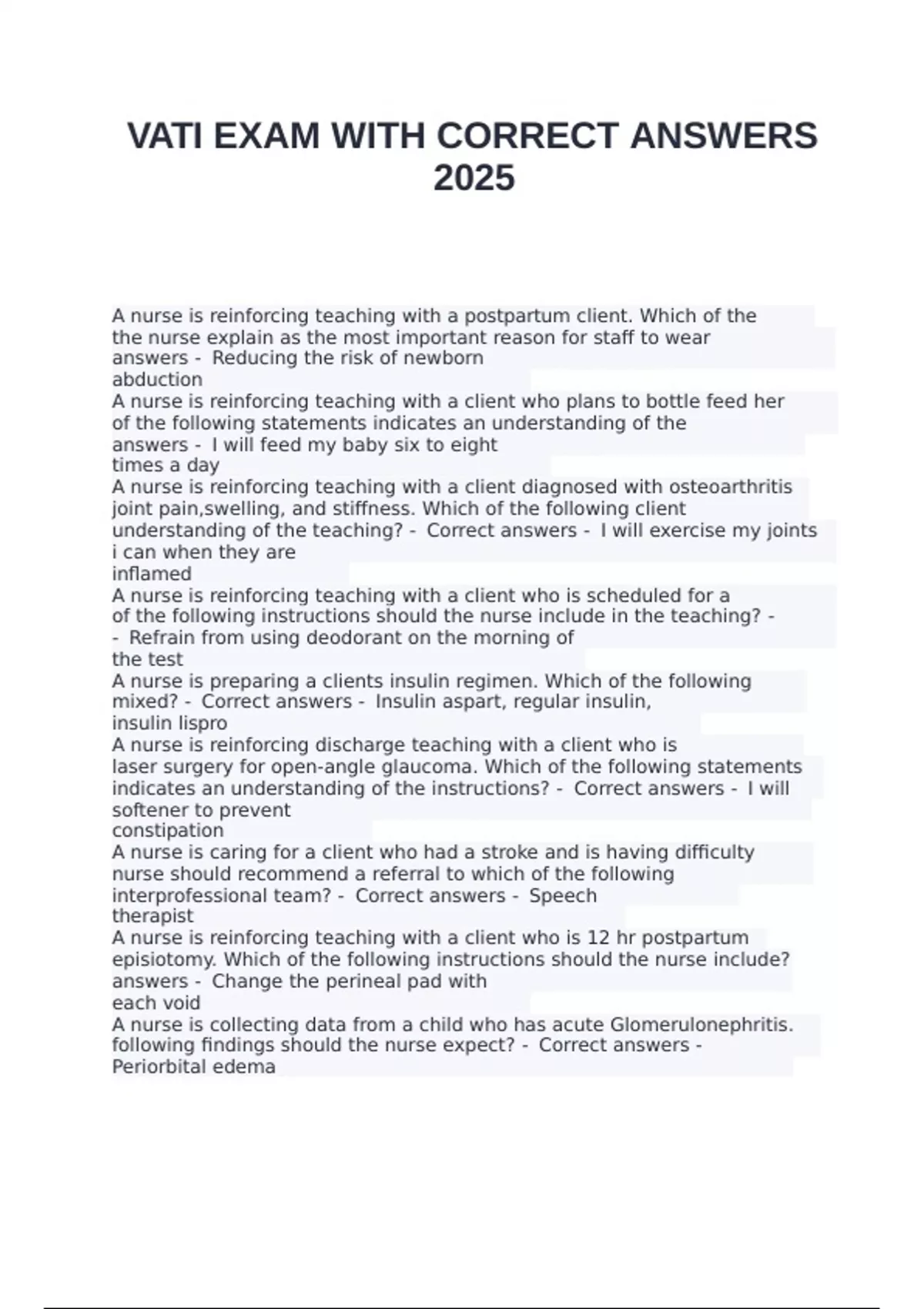 VATI EXAM WITH CORRECT ANSWERS
