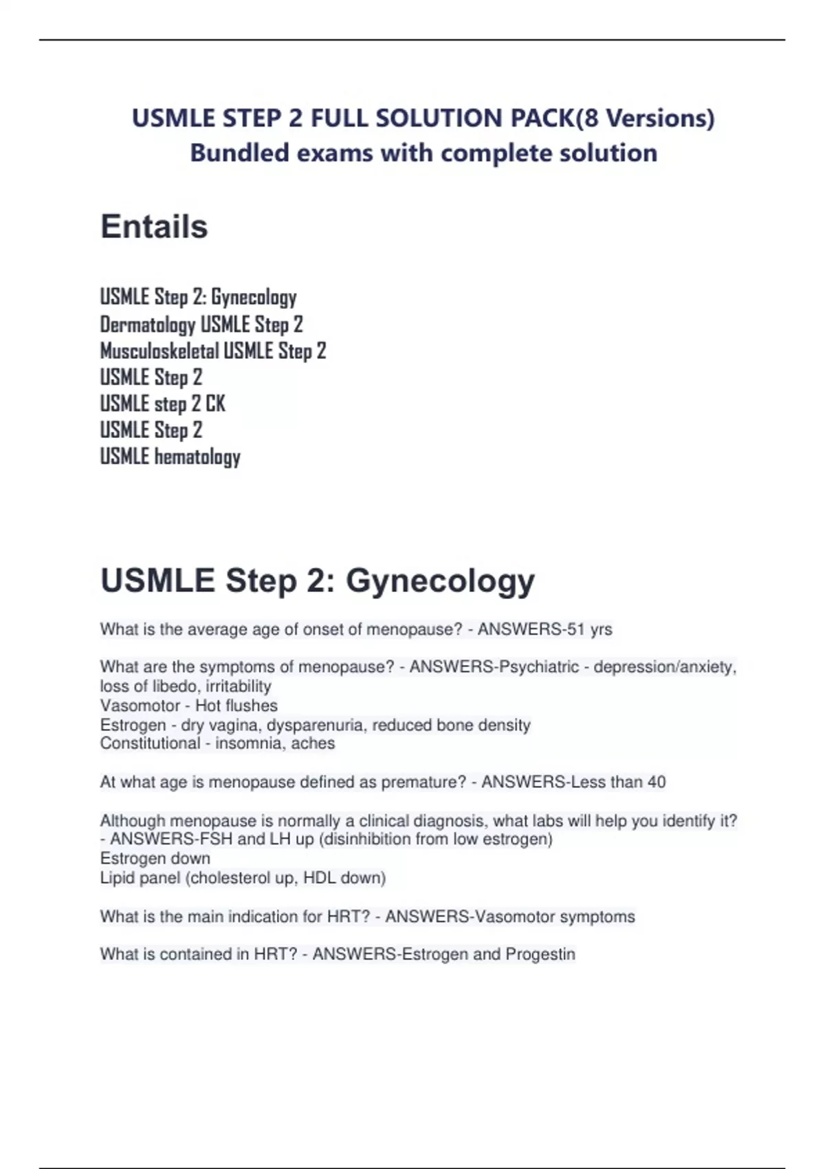 Bundled exams with complete solution