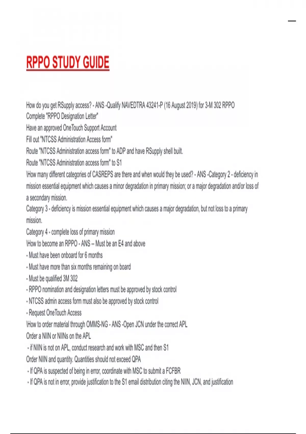 How do you get RSupply access? - ANS -Qualify NAVEDTRA 43241-P (16 August 2019) for 3-M 302 RPPO
