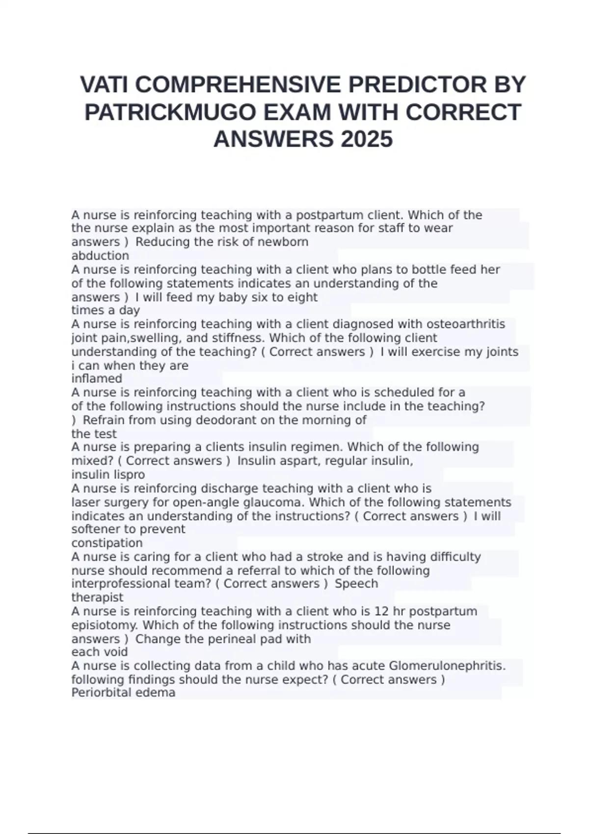 VATI COMPREHENSIVE PREDICTOR BY PATRICKMUGO EXAM WITH CORRECT ANSWERS 2025