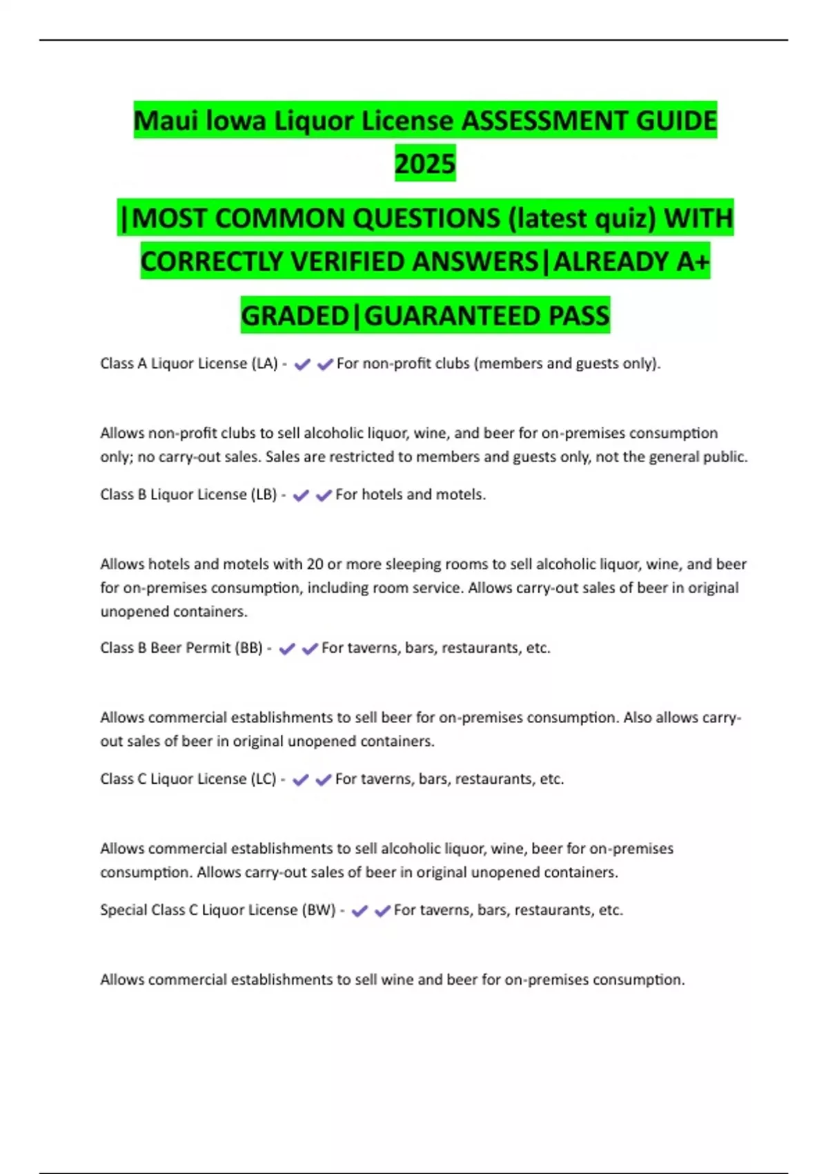 Class C Liquor License (LC) - For taverns, bars, restaurants, etc.