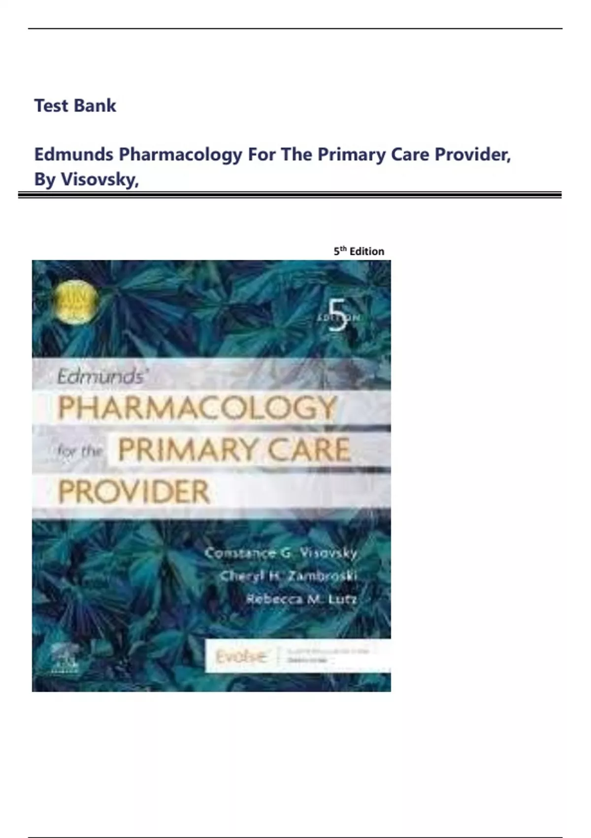 Test Bank for Edmunds Pharmacology for the Primary Care Provider, 5th Edition by Visovsky, All 1 - 73 Chapters Covered|| With Rationales || 100% Verified Solutions