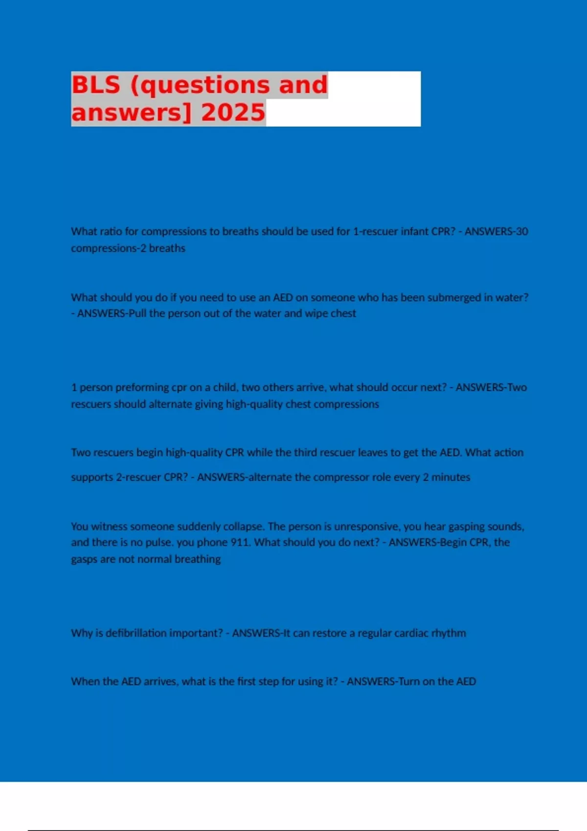 BLS (questions and answers] 2025