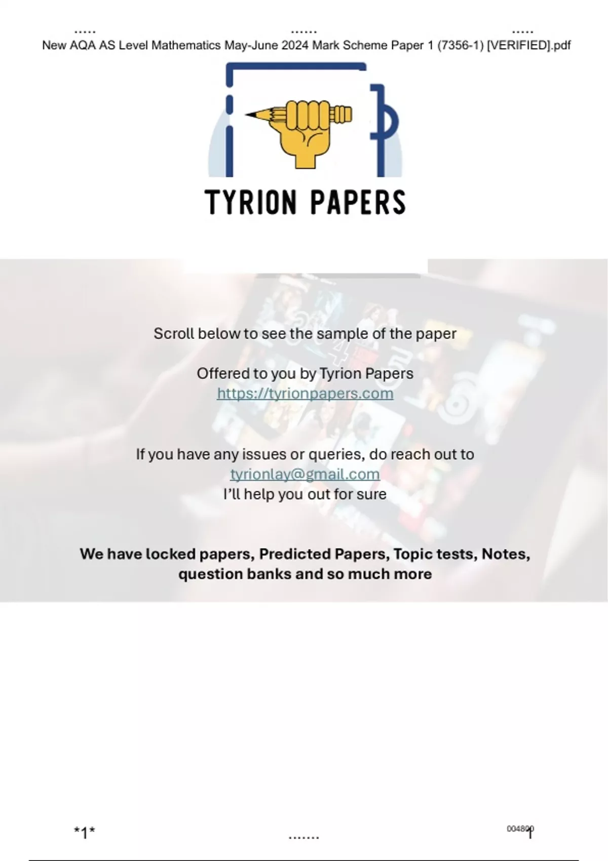 New AQA AS Level Mathematics May-June 2024 Mark Scheme Paper 1 (7356-1) [VERIFIED].pdf