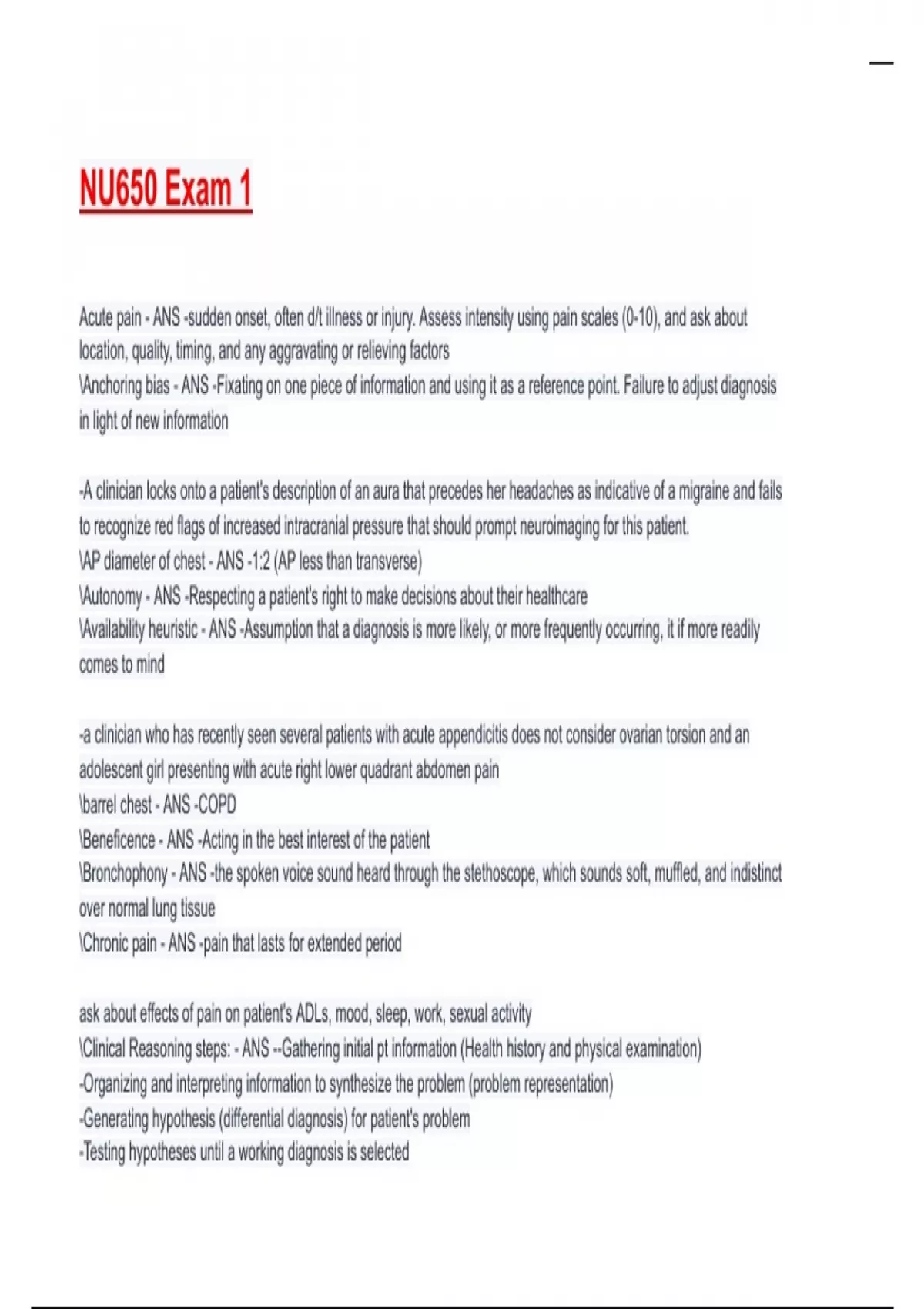 NU650 Exam 1