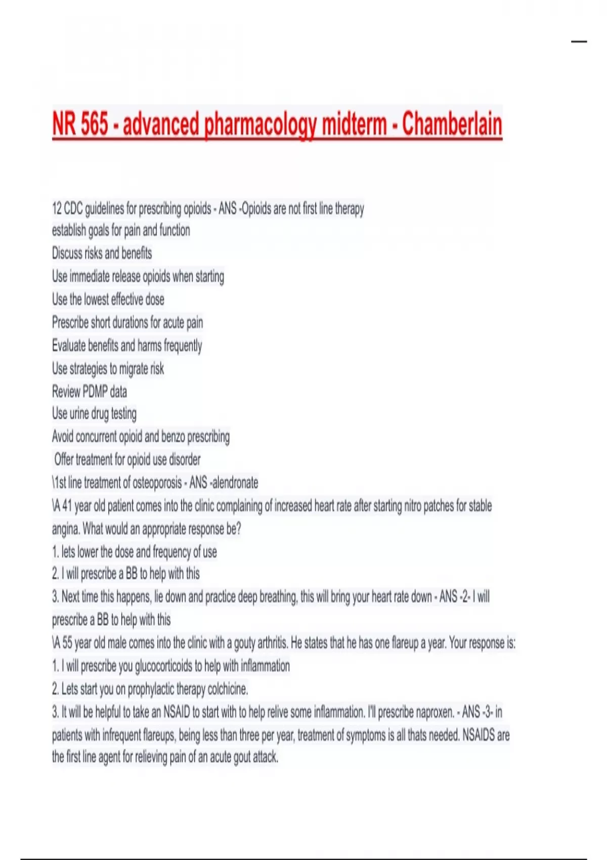 NR 565 - advanced pharmacology midterm - Chamberlain