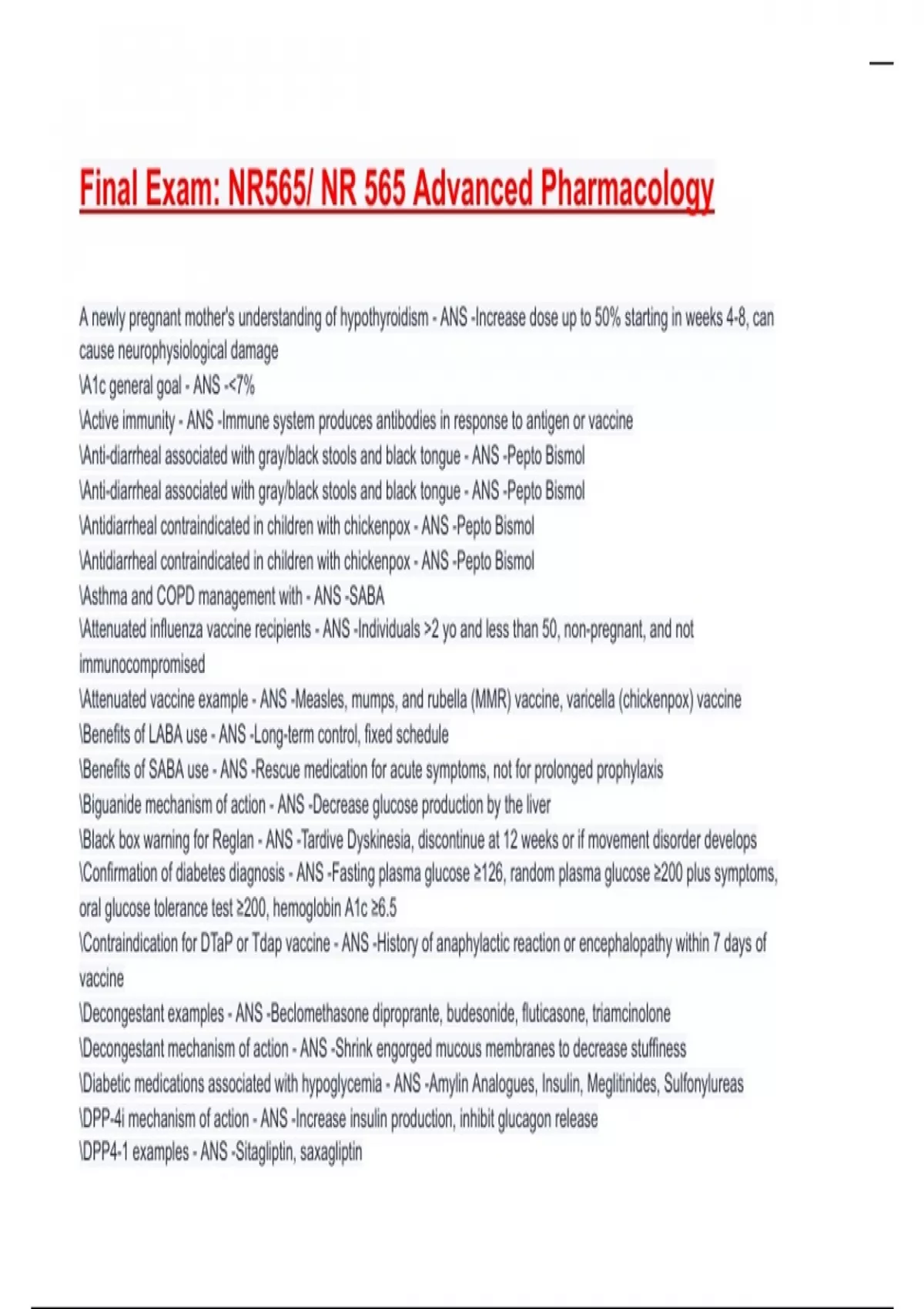 Final Exam: NR565/ NR 565 Advanced Pharmacology