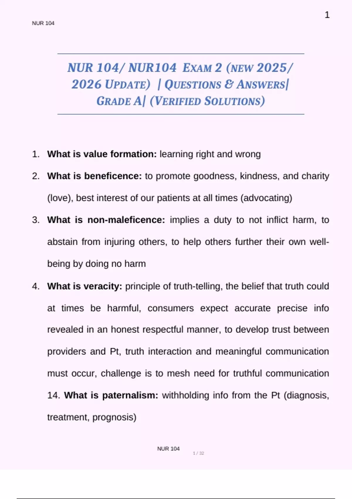 NUR 104/ NUR104 E XAM 2 (NEW 2025/