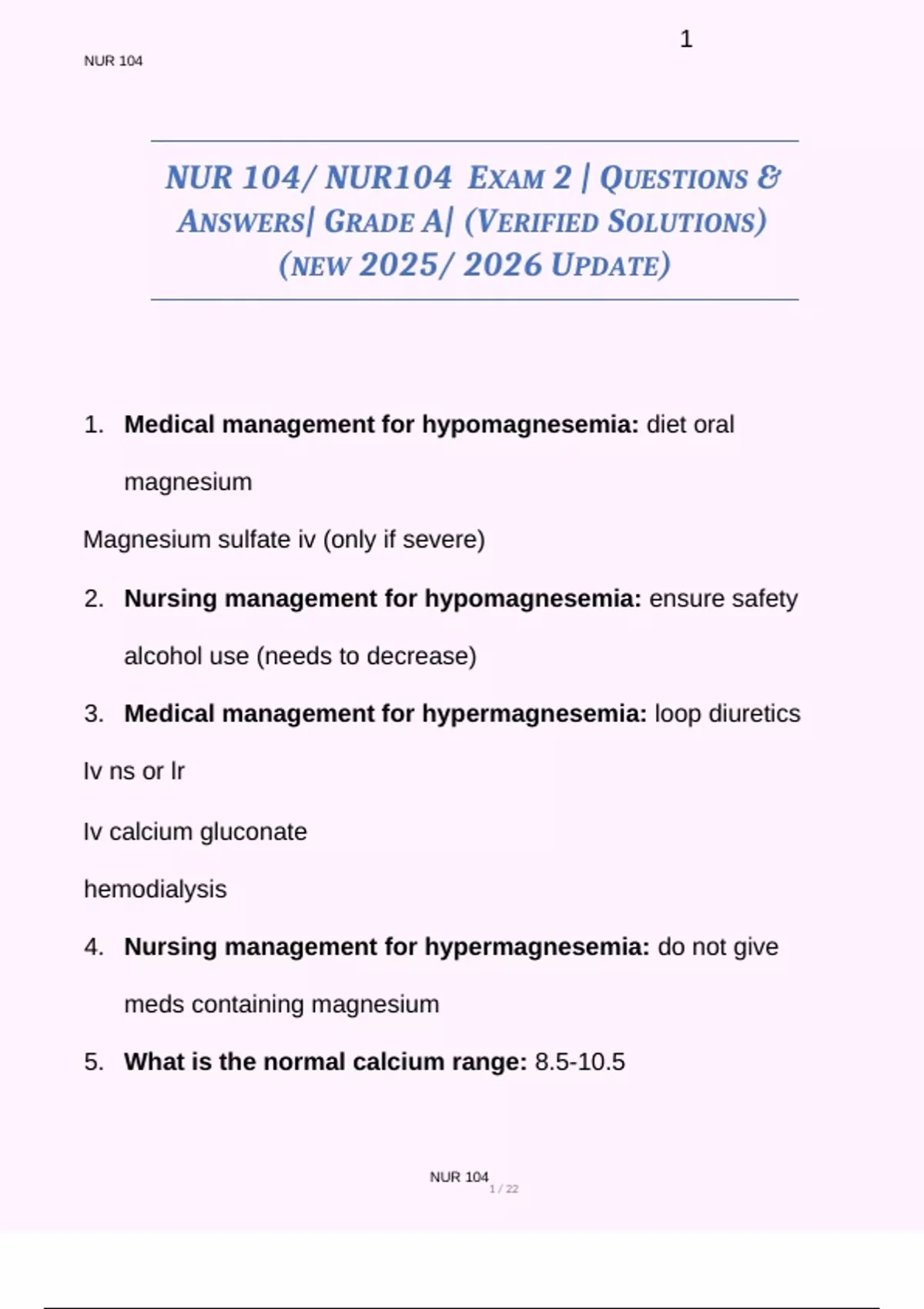NUR 104/ NUR104 EXAM 2 | QUESTIONS &