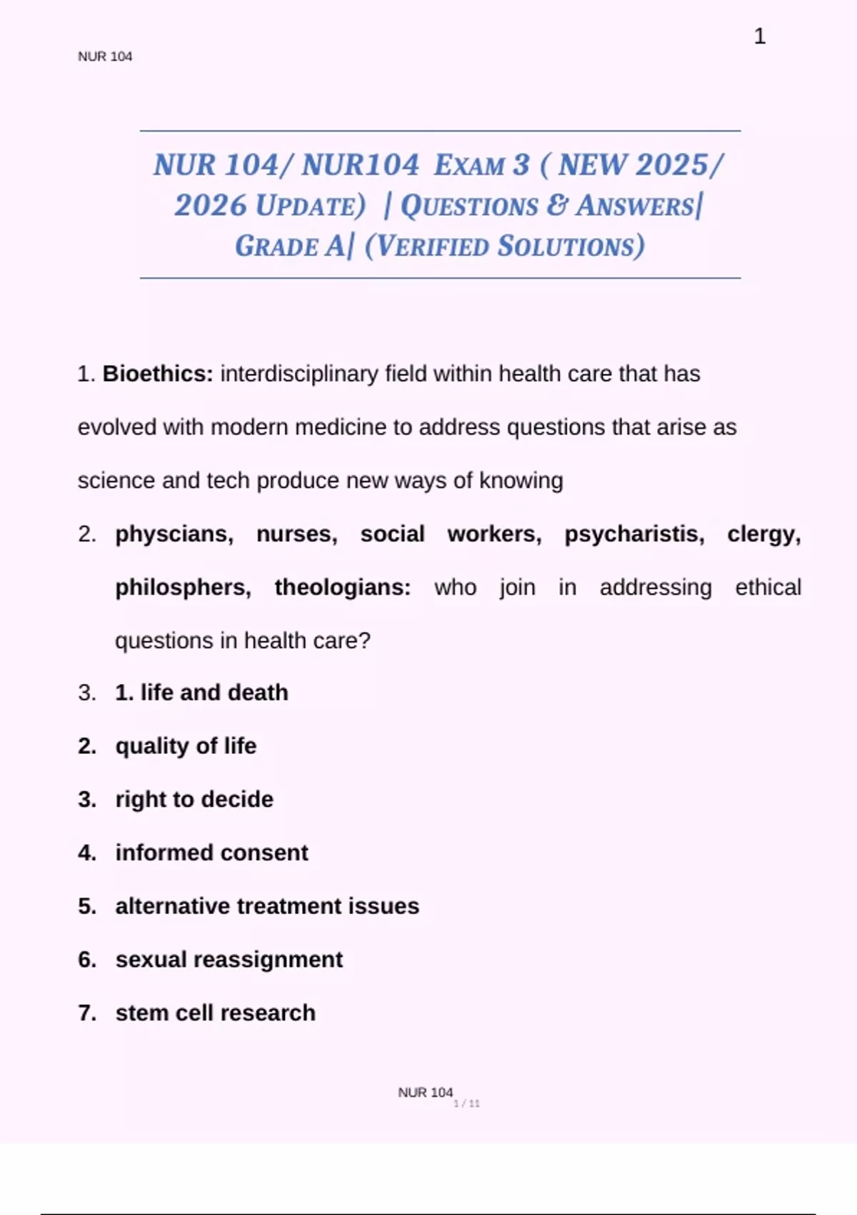 NUR 104/ NUR104 EXAM 3 ( NEW 2025/ 2026 UPDATE) | QUESTIONS & ANSWERS| GRADE A| (VERIFIED SOLUTIONS)