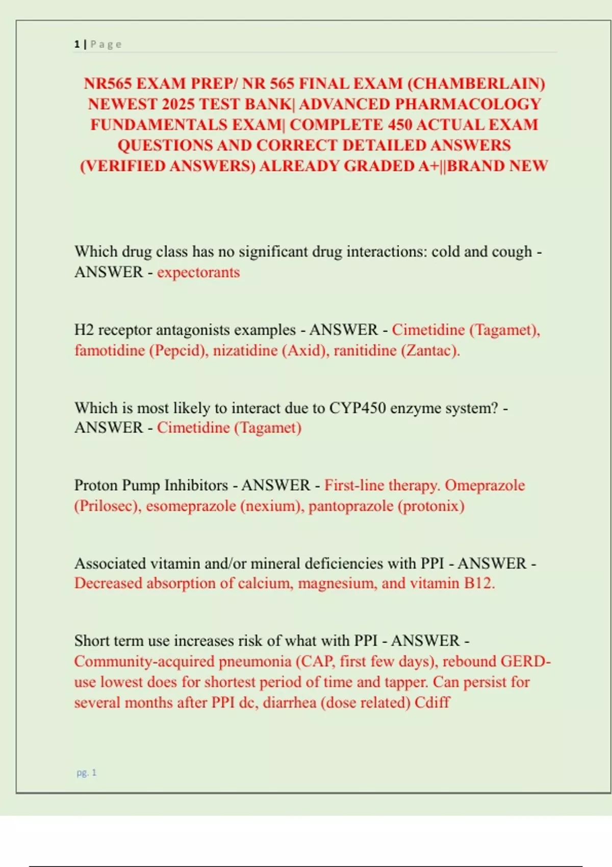 NR565 EXAM PREP/ NR 565 FINAL EXAM (CHAMBERLAIN)