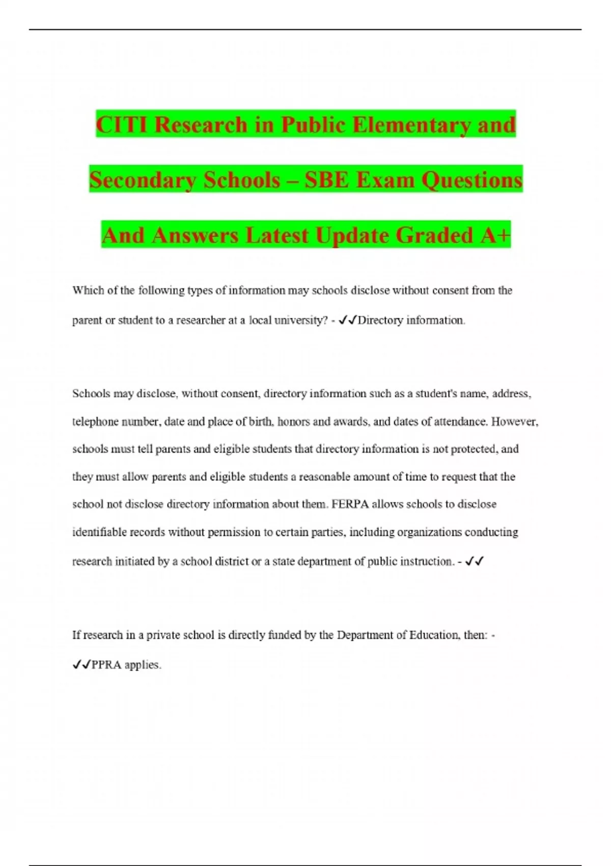 CITI Research with Prisoners– SBE Exam Questions And Answers Latest Update Graded A+