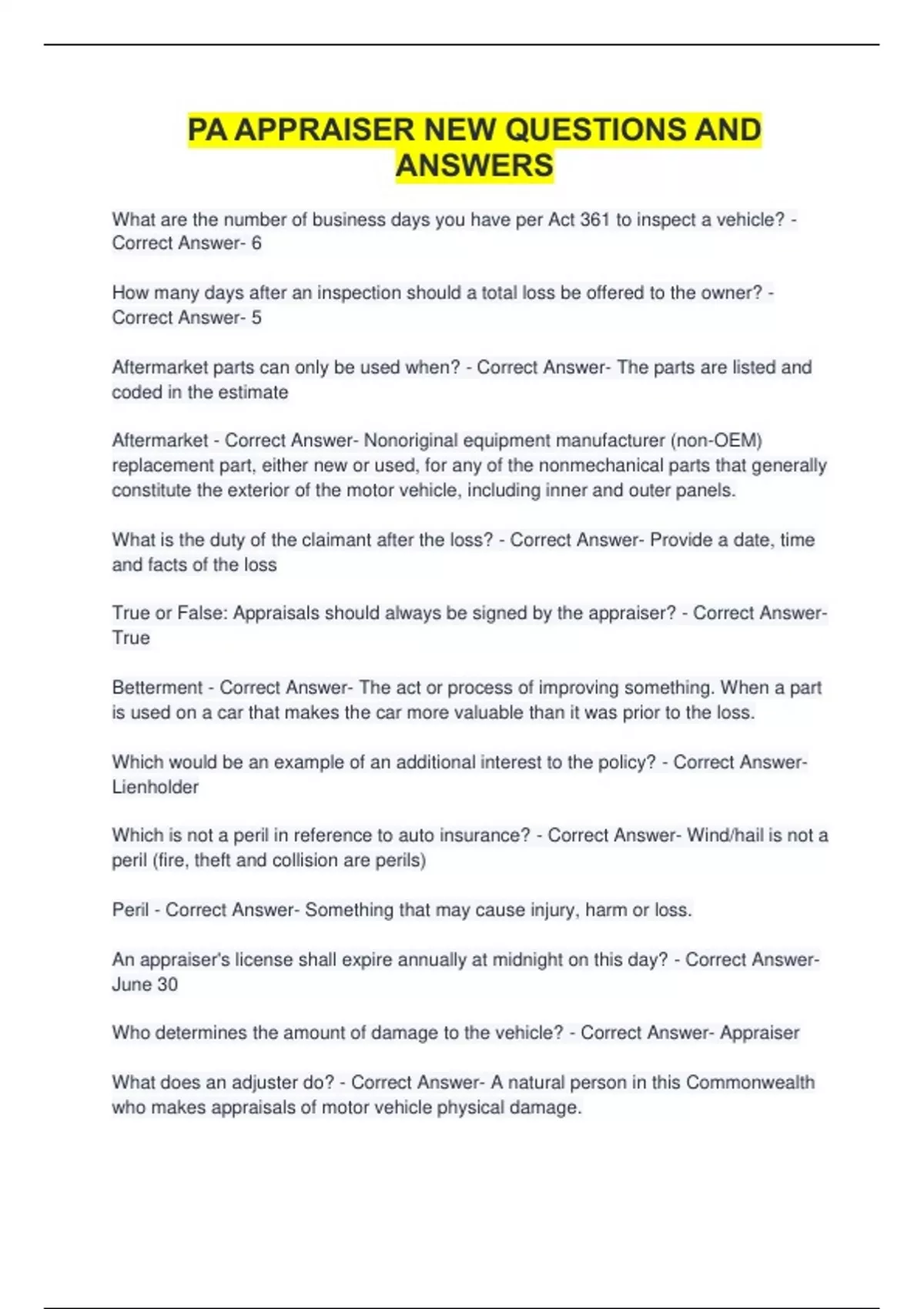 Who determines the amount of damage to the vehicle? - Correct Answer- Appraiser
