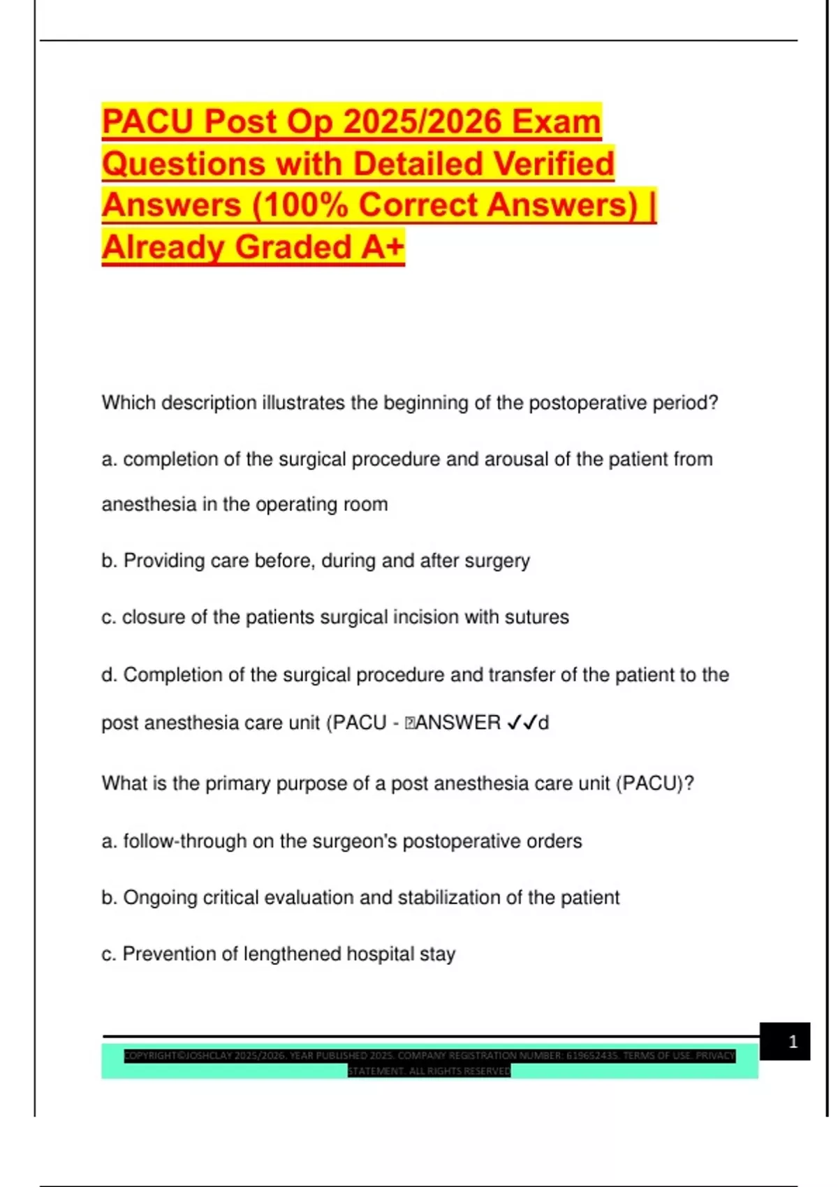Answers (100% Correct Answers) |