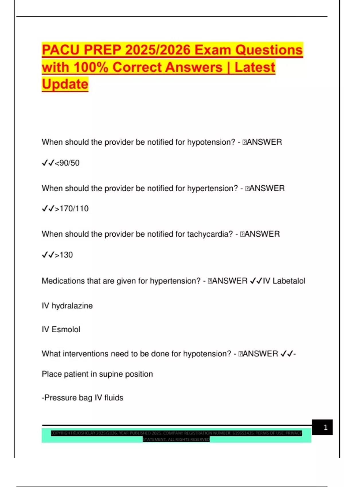 PACU PREP 2025/2026 Exam Questions