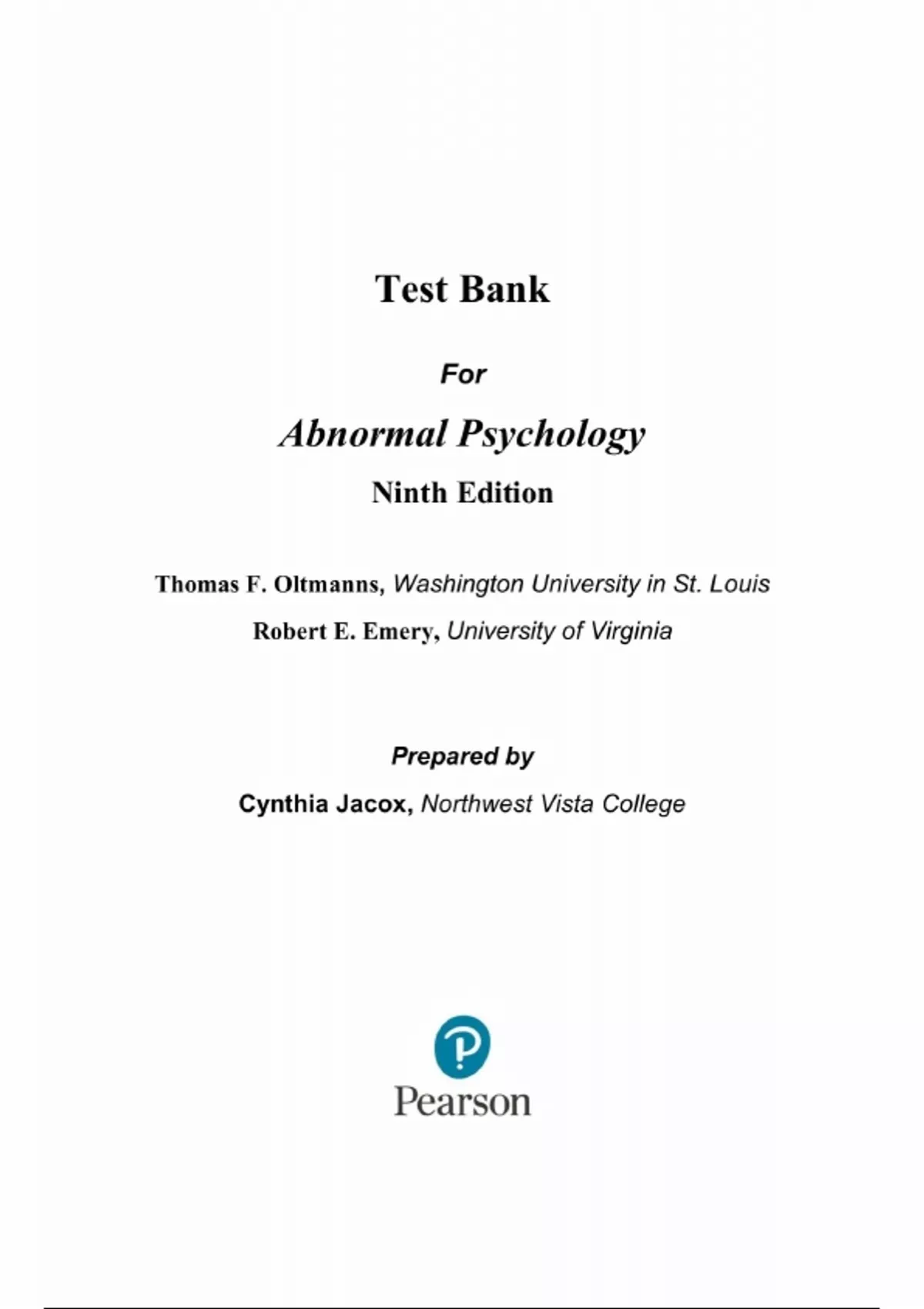 Test Bank - Abnormal Psychology 9th Edition by Thomas Oltmanns, All chapters Latest update