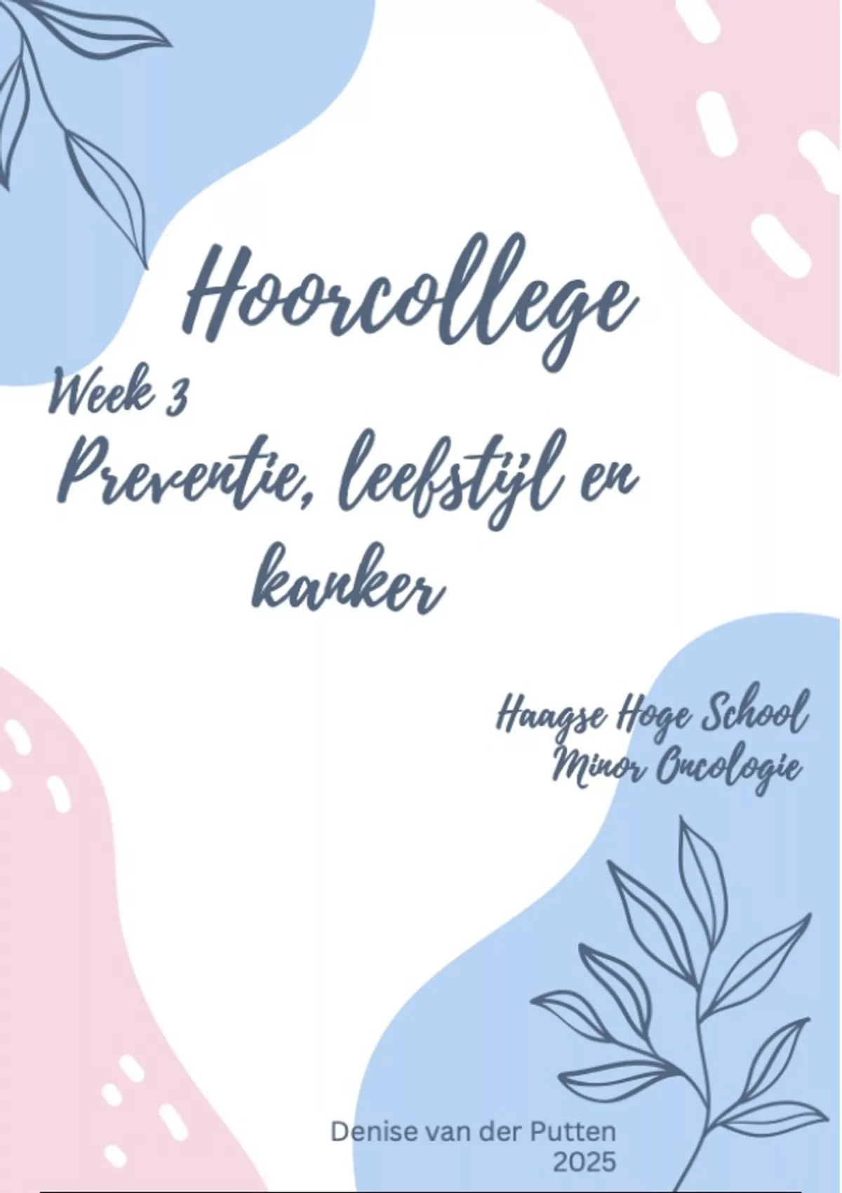 Aantekeningen hoorcollege week 3 - Preventie, leefstijl en kanker