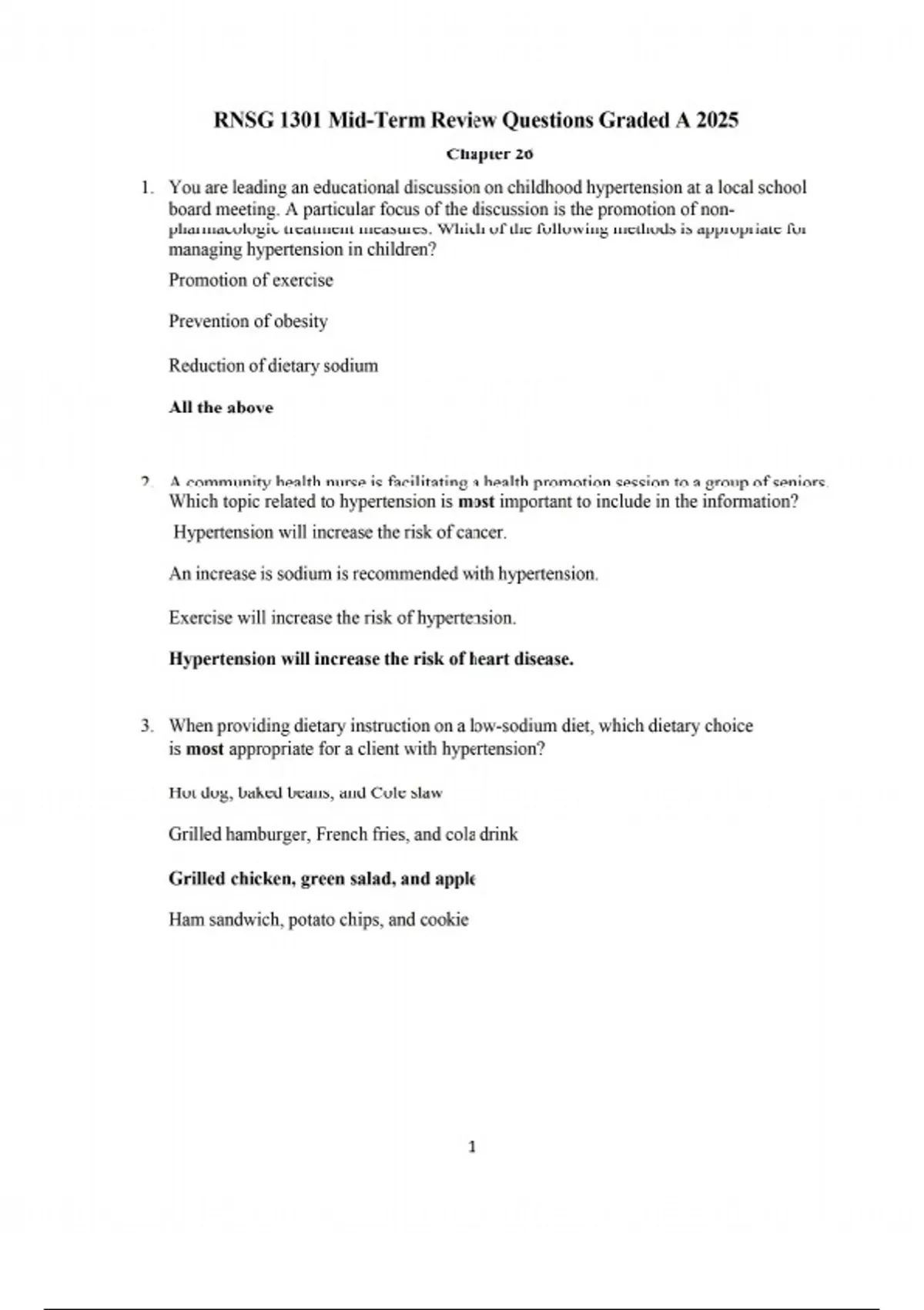RNSG 1301 Mid-Term Review Questions Graded A 2025