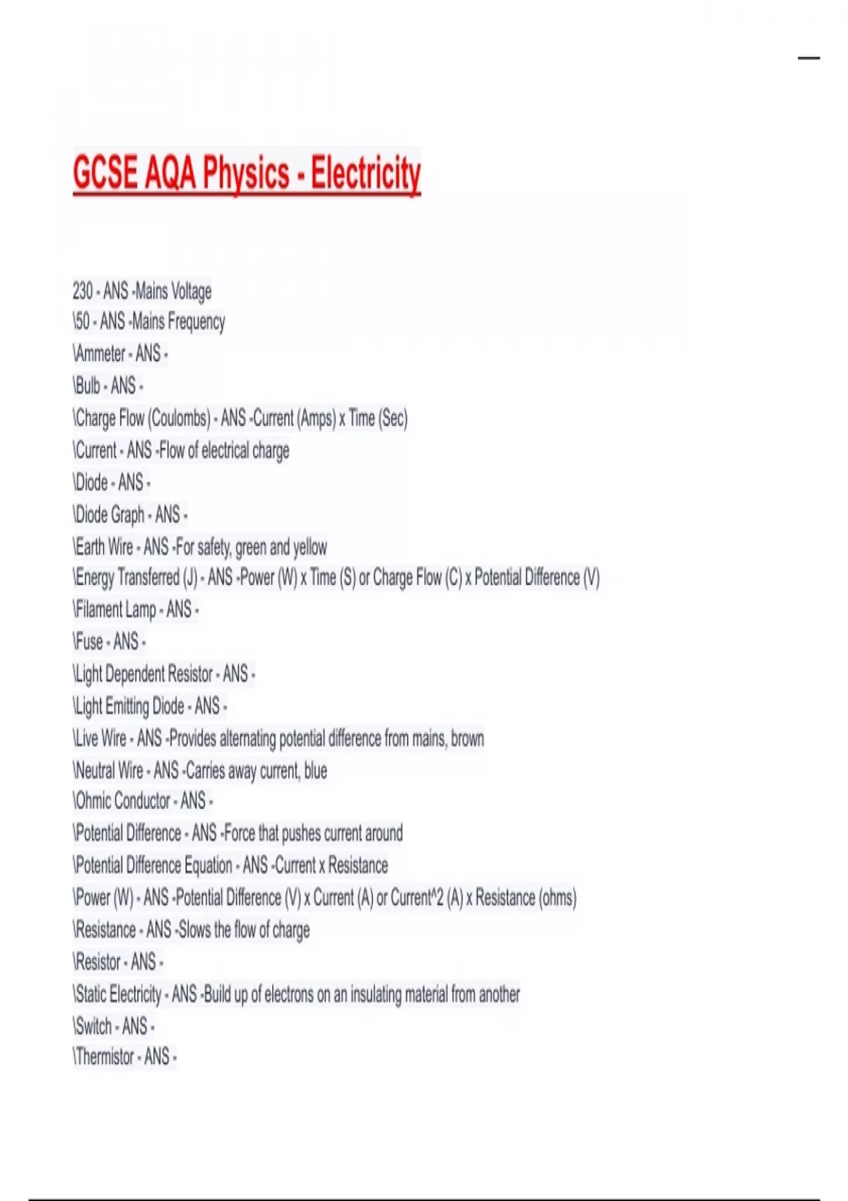 GCSE AQA Physics - Electricity Exam 2025/2026 Questions With Completed Solutions.