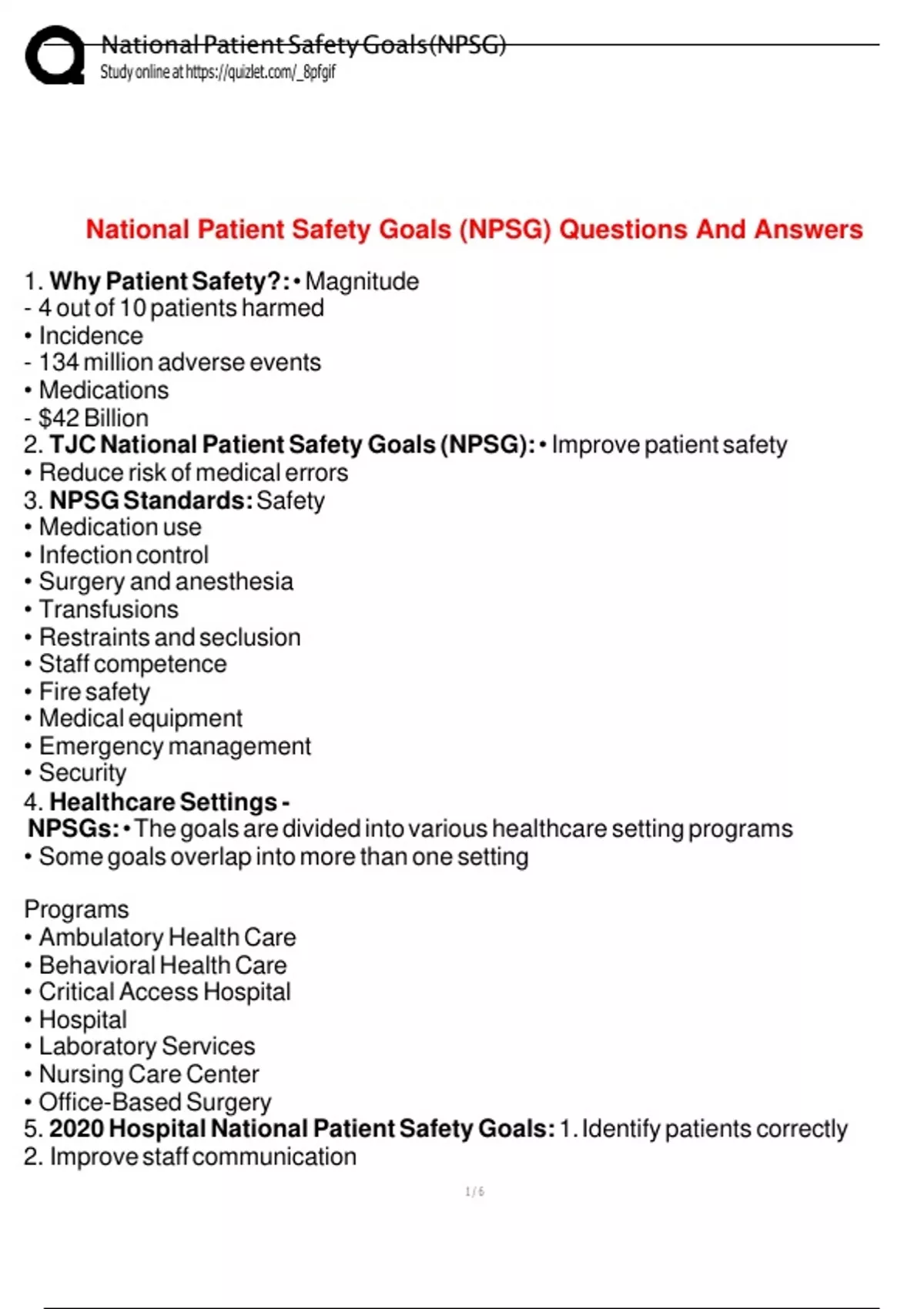 5. 2020 Hospital National Patient Safety Goals: 1. Identify patients correctly