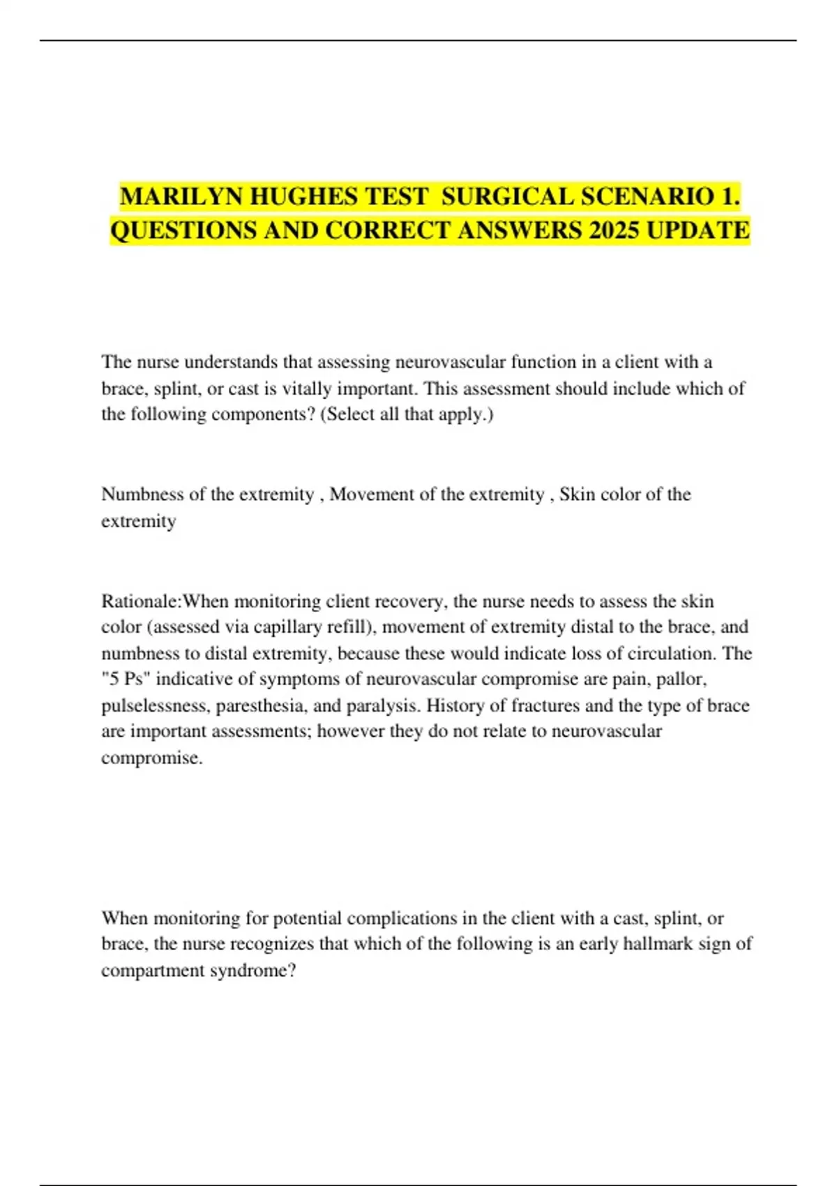 MARILYN HUGHES TEST SURGICAL SCENARIO 1. QUESTIONS AND CORRECT ANSWERS 2025 UPDATE