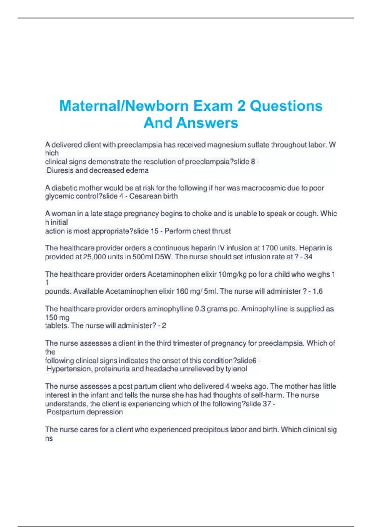 Maternal/Newborn Exam 2 Questions