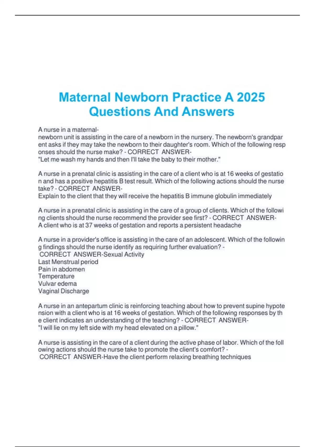 Maternal Newborn Practice A 2025 Questions And Answers Maternal Newborn Practice A 2025 Questions And Answers Maternal Newborn Practice A 2025 Questions And Answers