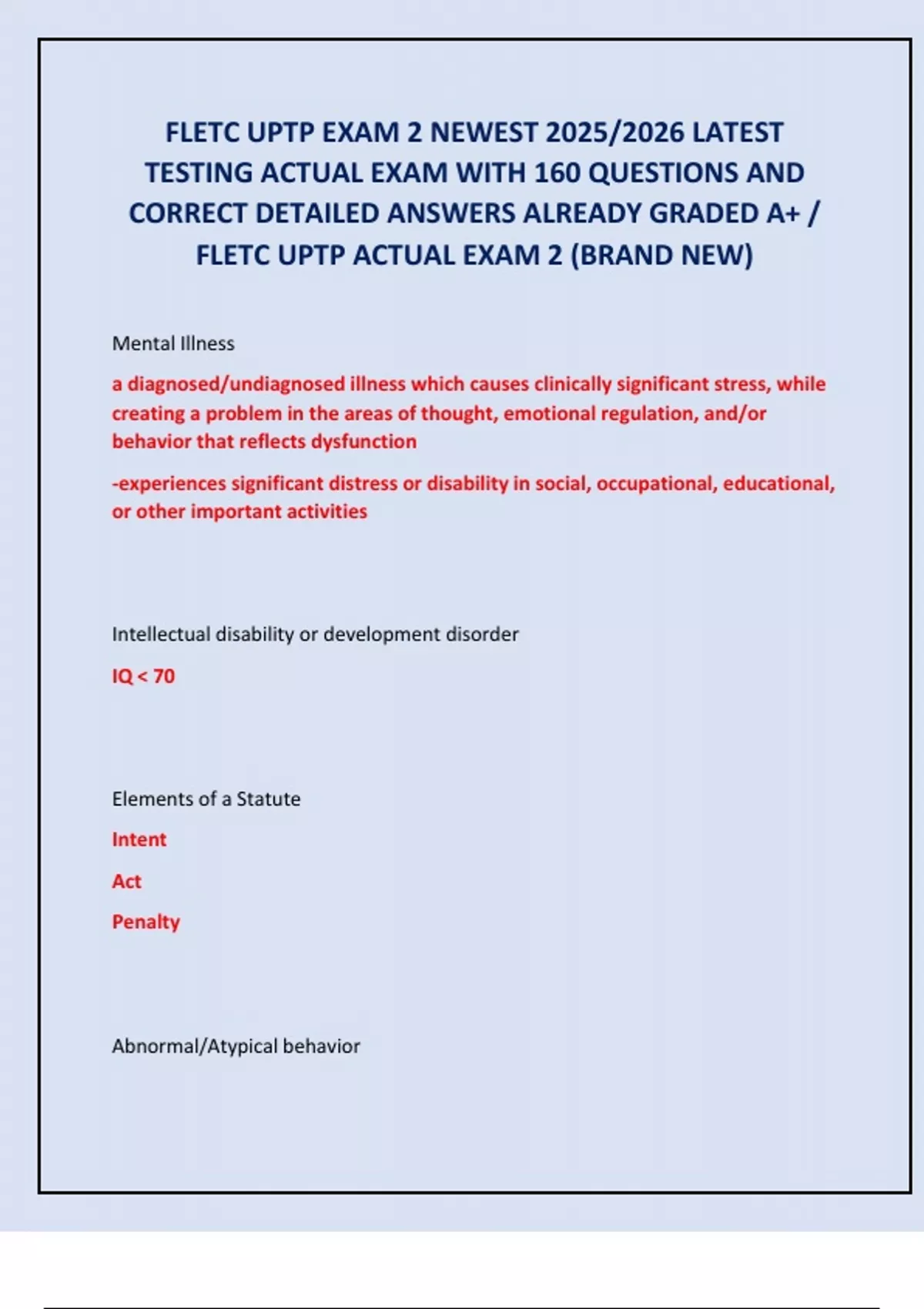 FLETC UPTP EXAM 2 NEWEST 2025/2026 LATEST TESTING ACTUAL EXAM WITH 160 QUESTIONS AND CORRECT DETAILED ANSWERS ALREADY GRADED A+ / FLETC UPTP ACTUAL EXAM 2 (BRAND NEW)
