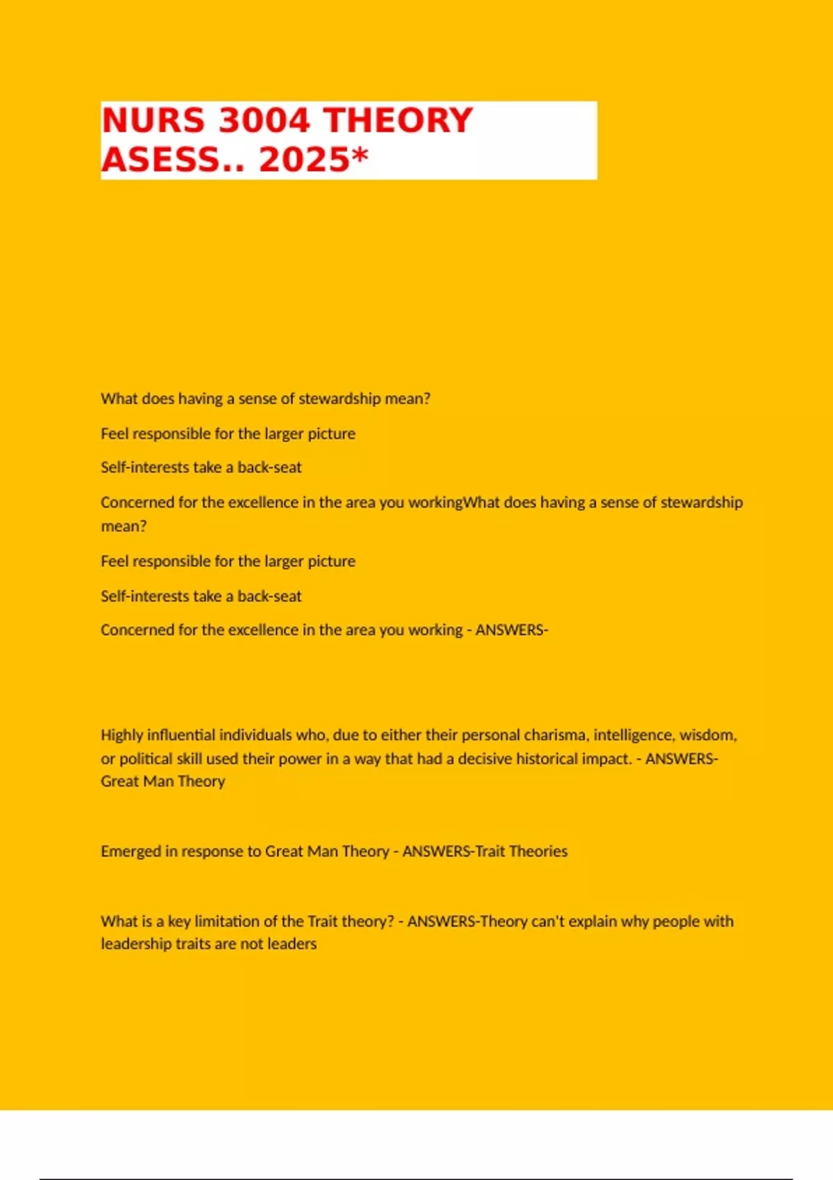 Emerged in response to Great Man Theory - ANSWERS-Trait Theories