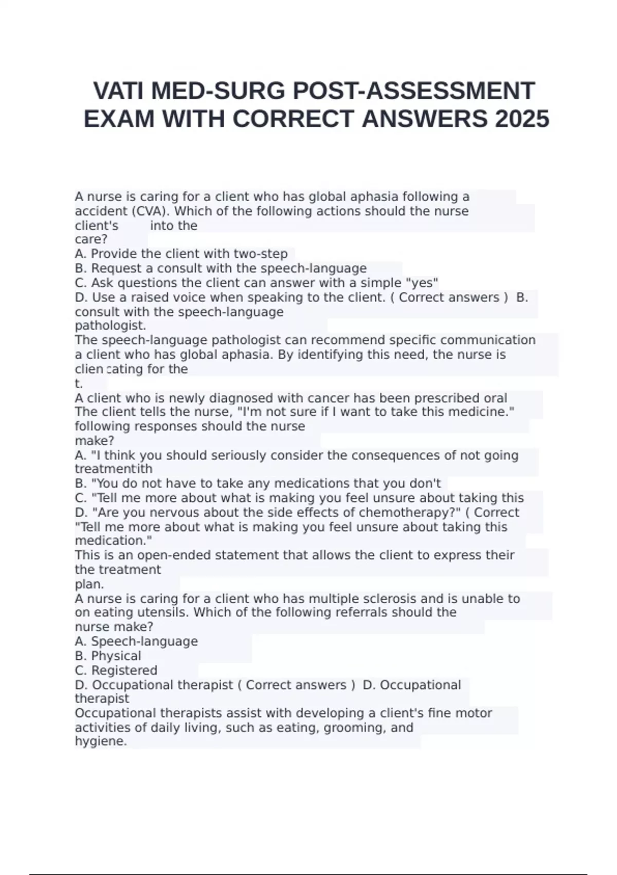 VATI MED-SURG POST-ASSESSMENT