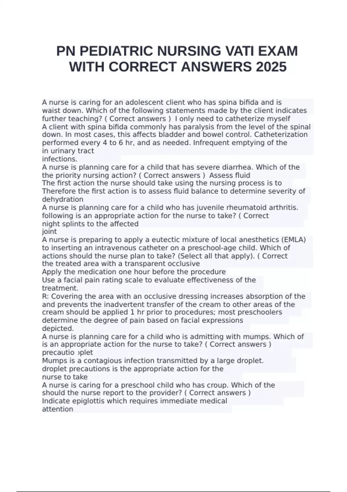 PN PEDIATRIC NURSING VATI EXAM WITH CORRECT ANSWERS 2025