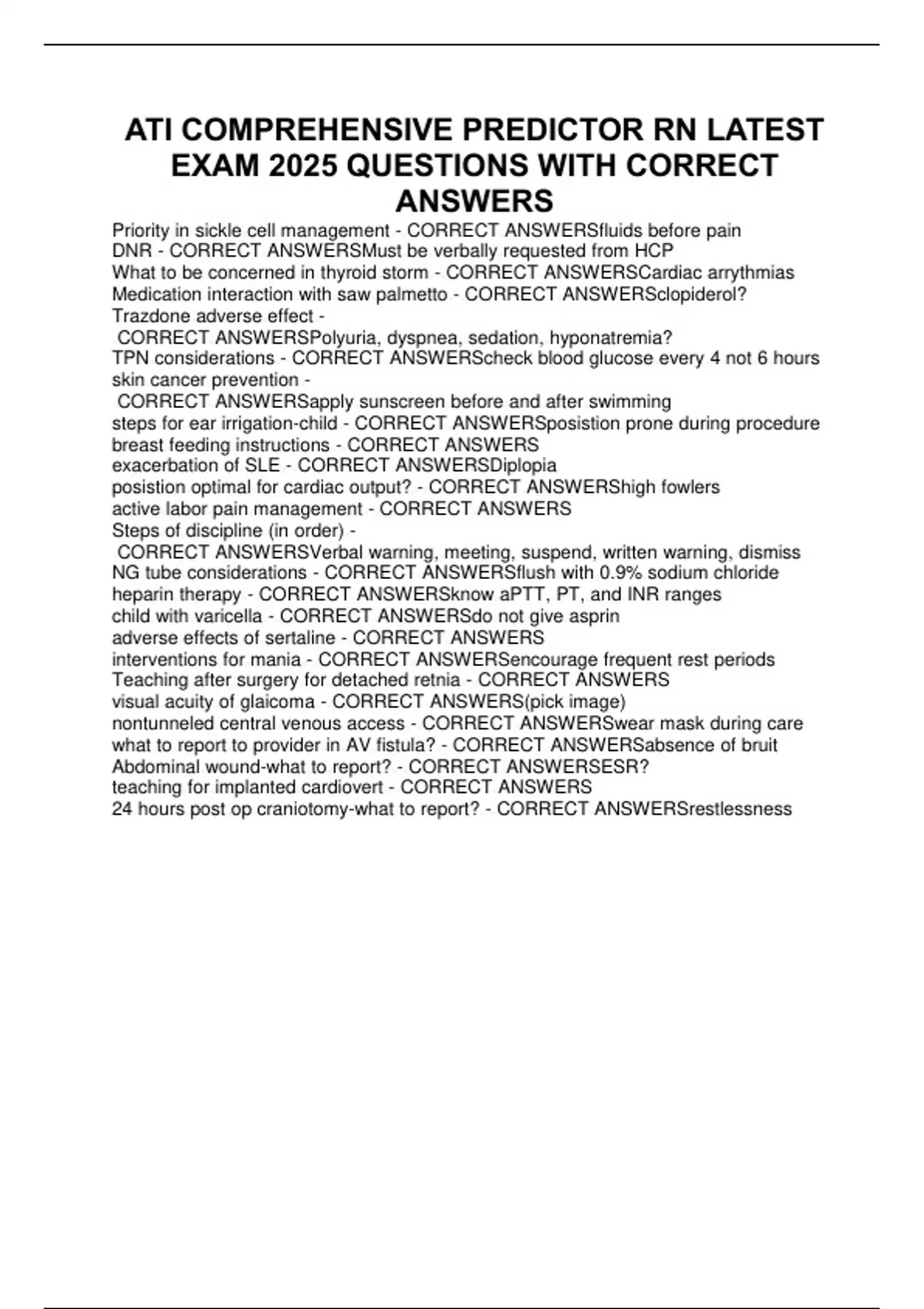 ATI COMPREHENSIVE PREDICTOR RN LATEST EXAM 2025 QUESTIONS WITH CORRECT ANSWERS