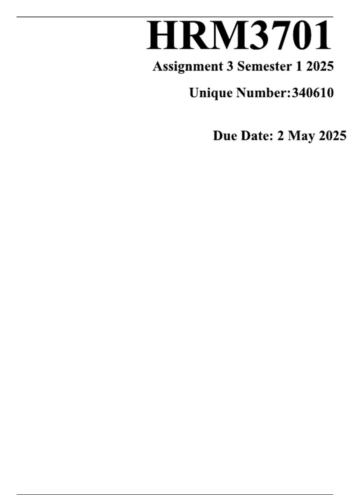 HRM3701 Assignment 3 (ANSWERS) Semester 1 2025 (340610) Due 2 May 2025