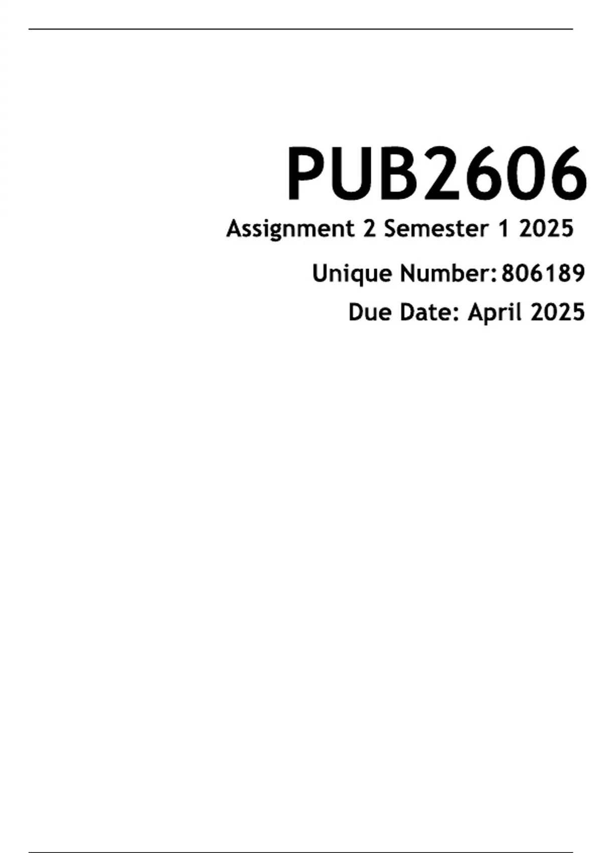 PUB2606 Assignment 2 (COMPLETE ANSWERS) semester 1 2025 DUE April 2025
