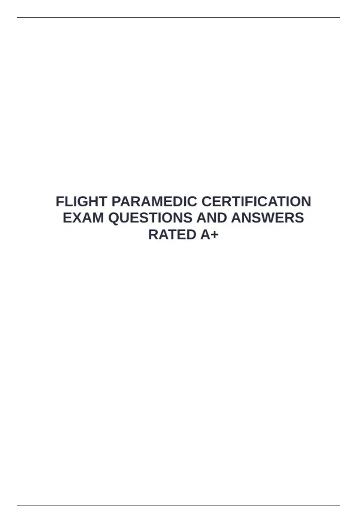 FLIGHT PARAMEDIC CERTIFICATION EXAM QUESTIONS AND ANSWERS RATED A+