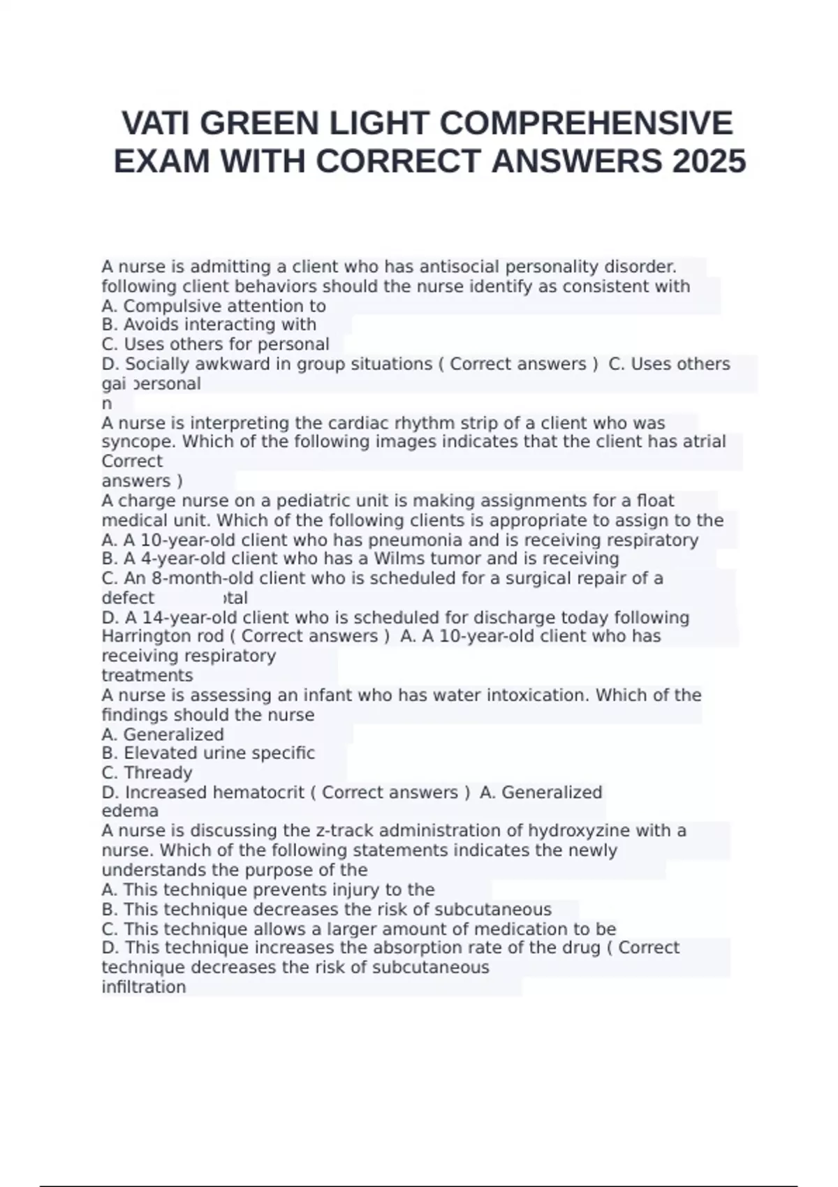 Harrington roda ( Correct answers ) A. A 10-year-old client who has