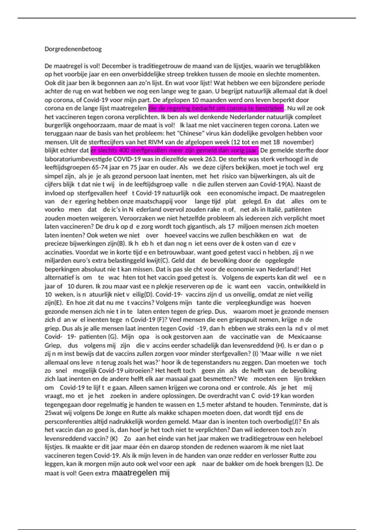 burgerlijk ongehoorzaam, maar de maat is vol! Ik laat me niet vaccineren tegen corona. Laten we
