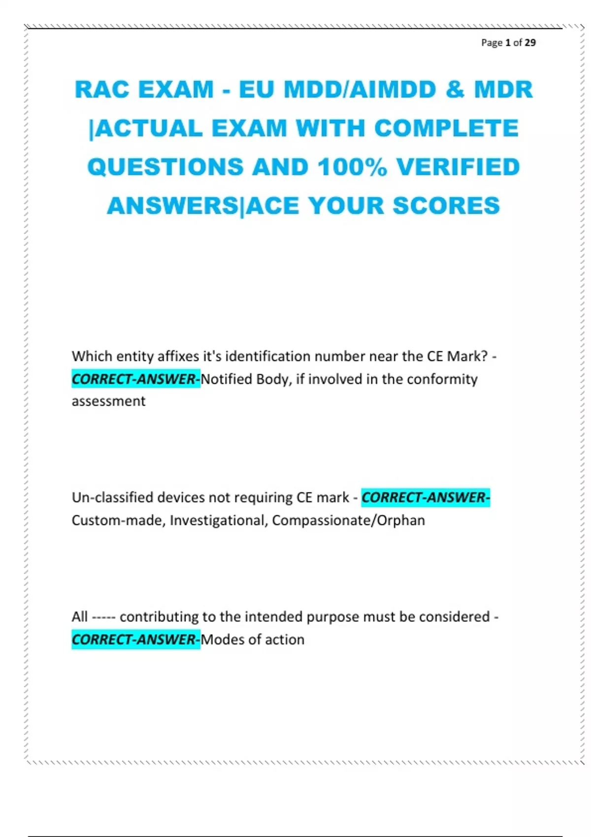 RAC EXAM - EU MDD/AIMDD & MDR