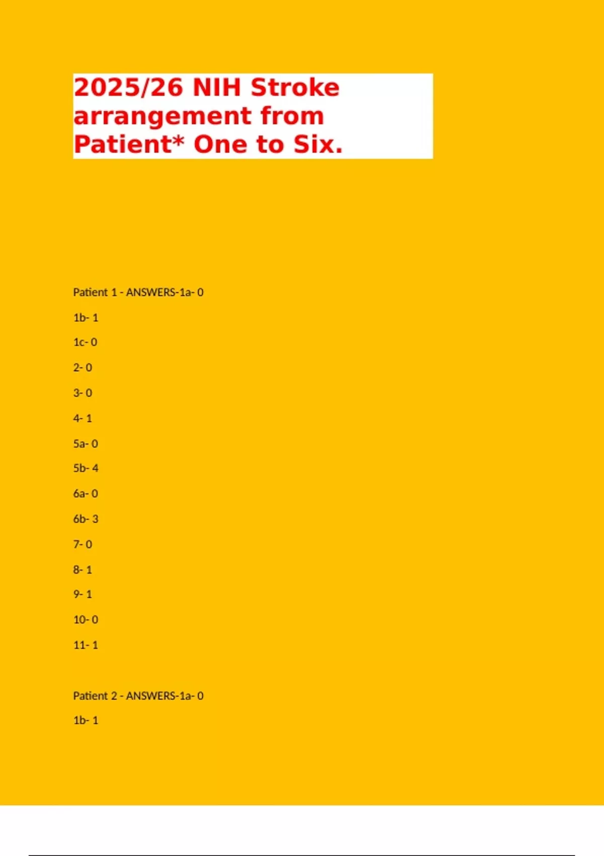 2025/26 NIH Stroke arrangement from Patient* One to Six.